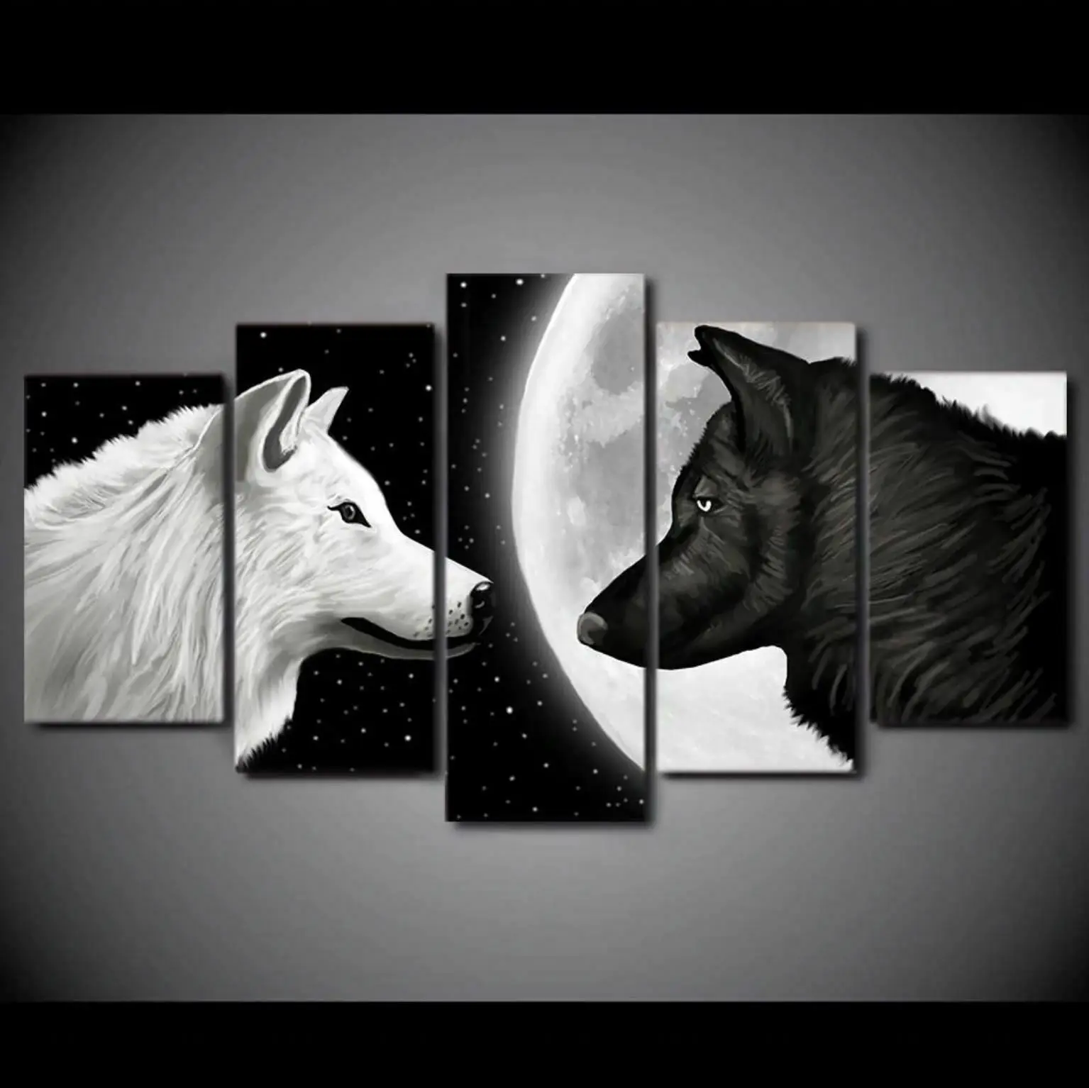 Модульная печать, 5 шт., животные, волк, луна, холст, живопись, дом...