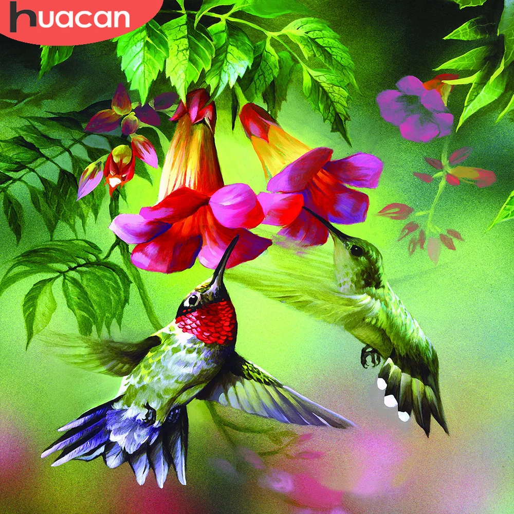 Алмазная живопись HUACAN, животное, колибри, мозаика, вышивка, утренняя слава, вышивка крестиком, настенное украшение, алмазная живопись
