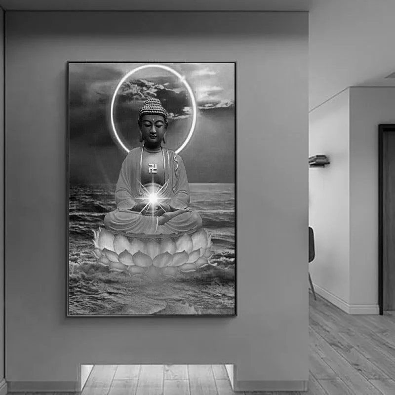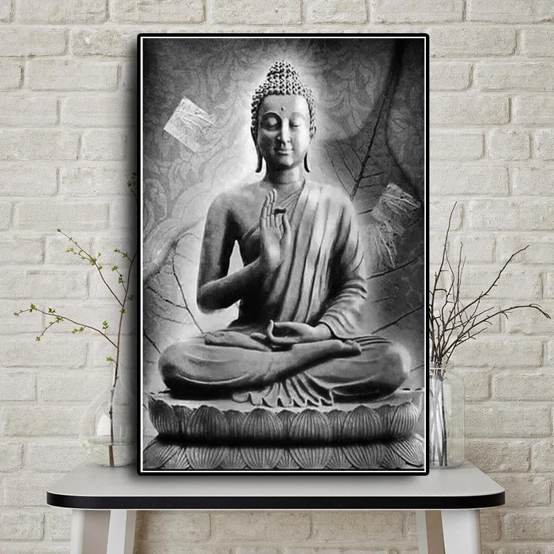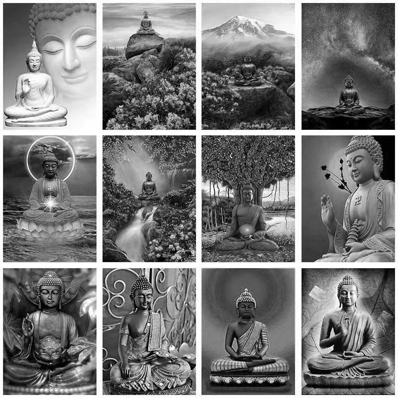 Картина из страз "Религия Будды", черно-белая, вышивка крестиком, 5D картина, мозаика, квадратная вышивка, искусство, буддизм, Декор