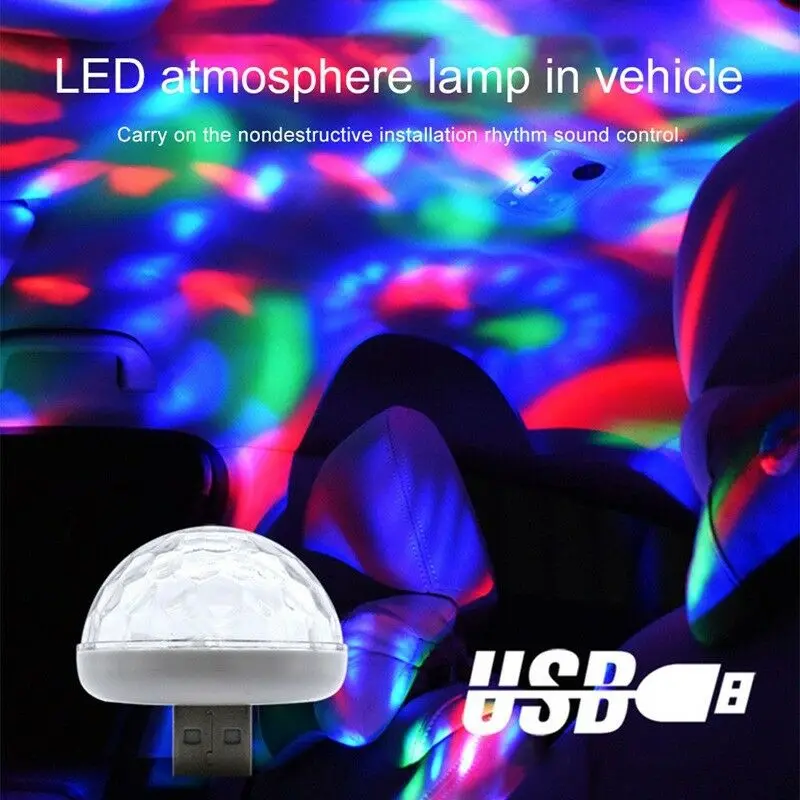 Автомобильный RGB атмосферный мини-светильник с USB, цветная музыкальная лампочка для диджея, праздничная вечеринка, караоке, атмосферная лампа, портативсветильник салона автомобиля