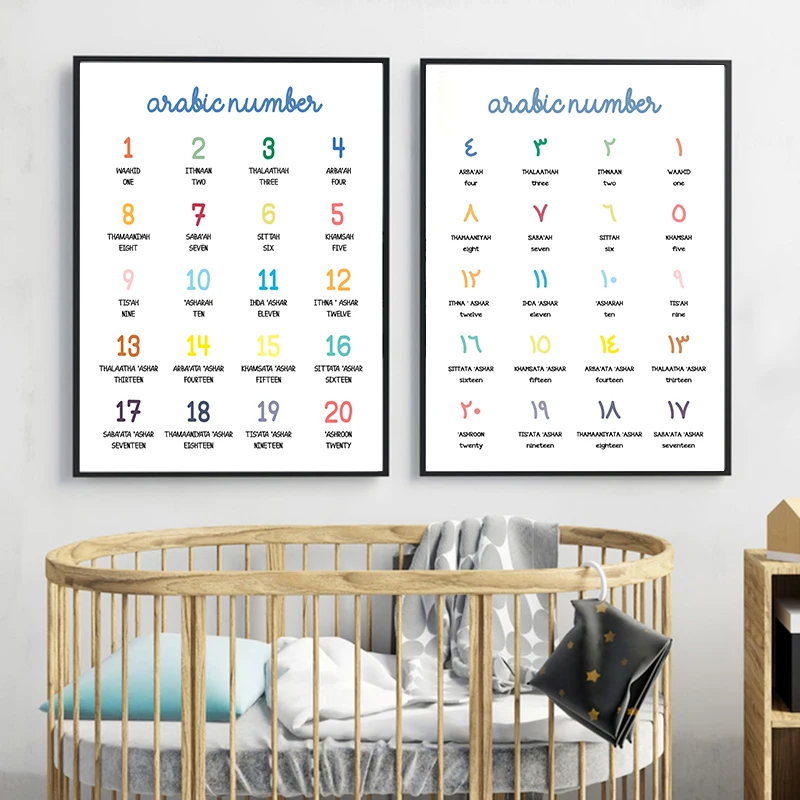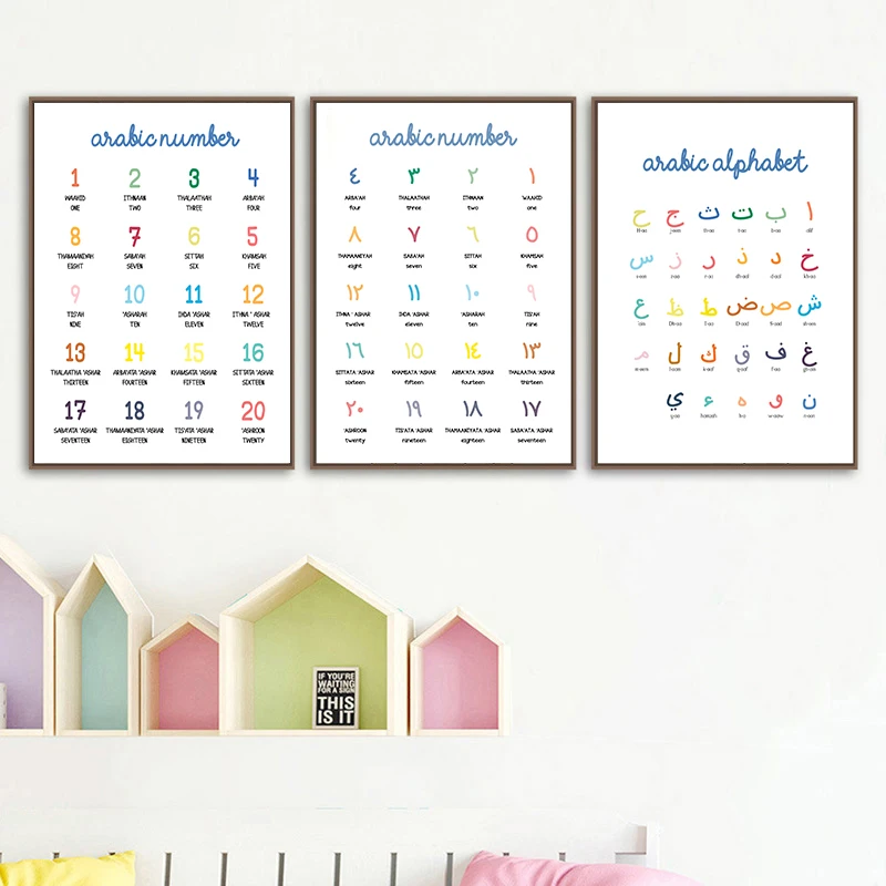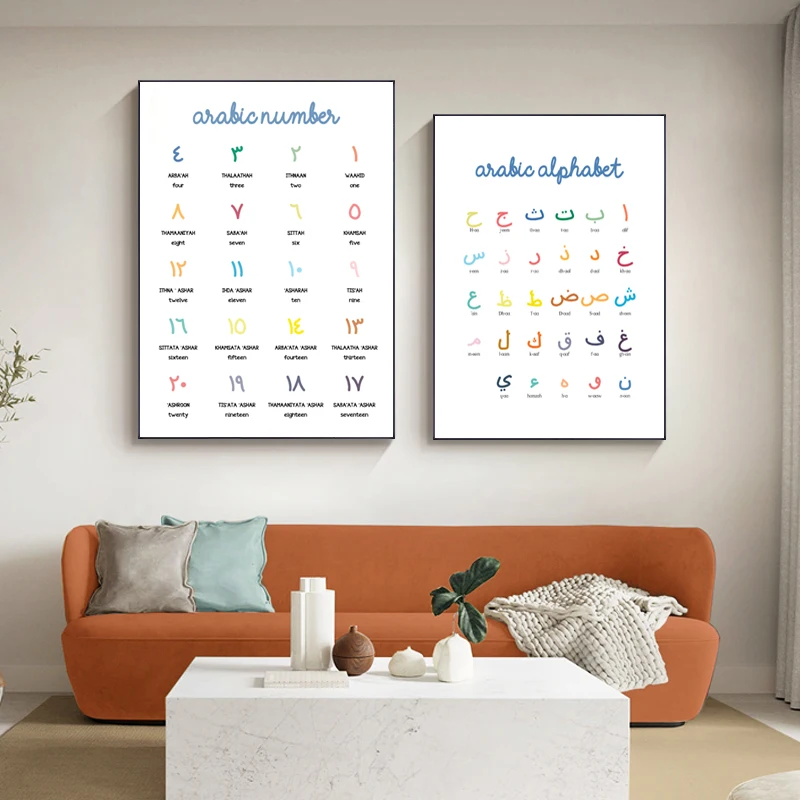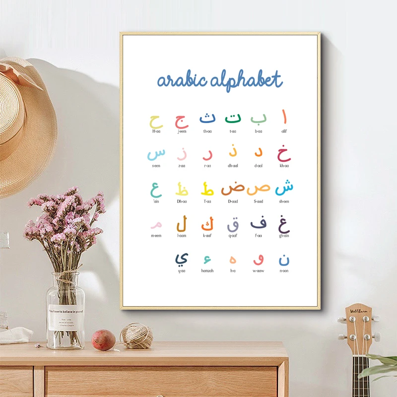 ABC плакат с алфавитом, мусульманская каллиграфия, Детская Настенная картина, Картина на холсте, Детские картины, украшение детской комнаты