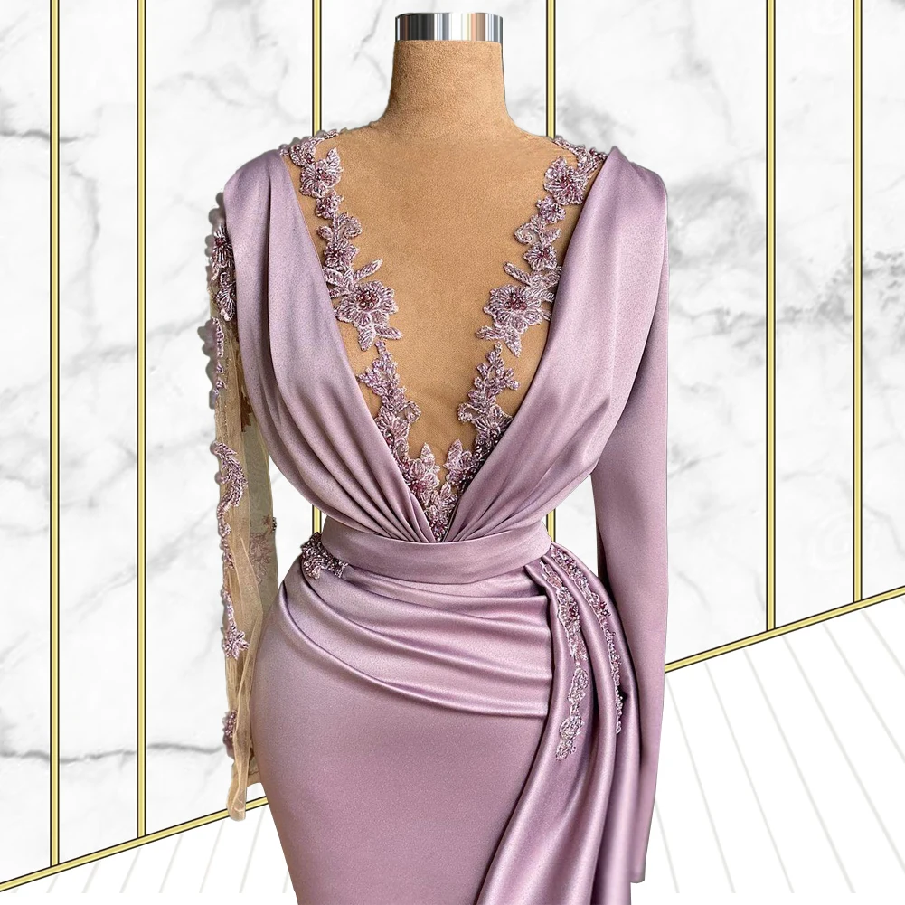 Женское вечернее платье с глубоким V-образным вырезом, светло-фиолетовое платье в арабском стиле, платье для выпускного вечера, 2022