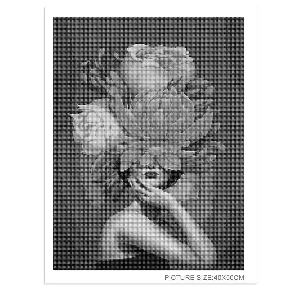 Алмазная живопись сделай сам с черными и белыми цветами, вышивка крестиком 5D, полноразмерная мозаика с интимными цветами для девушек, художественный Декор