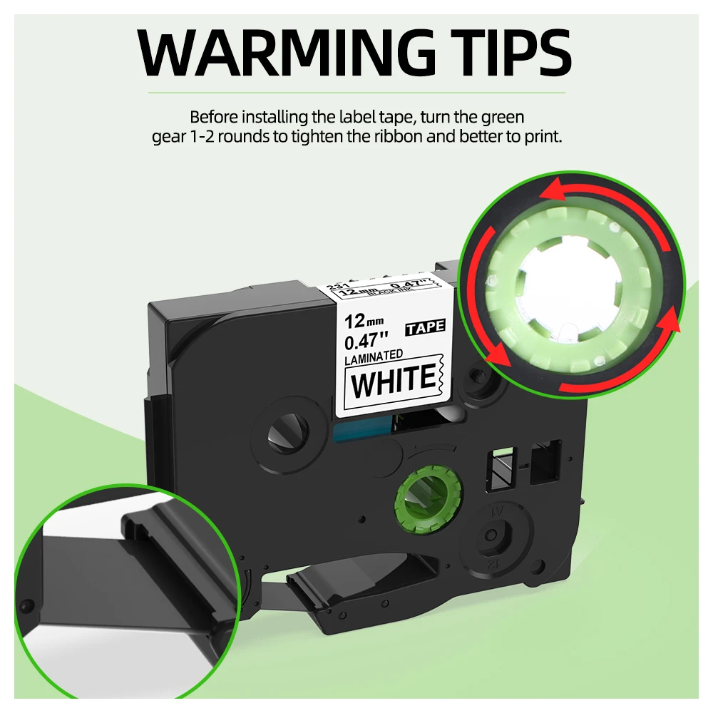• Пожалуйста,Поверните шестерню в направлении стрелки на ленте(Против часовой стрелки) затяните ленту перед установкой ленты tze в принтеры этикеток и избегайте поломки или помех ленты.