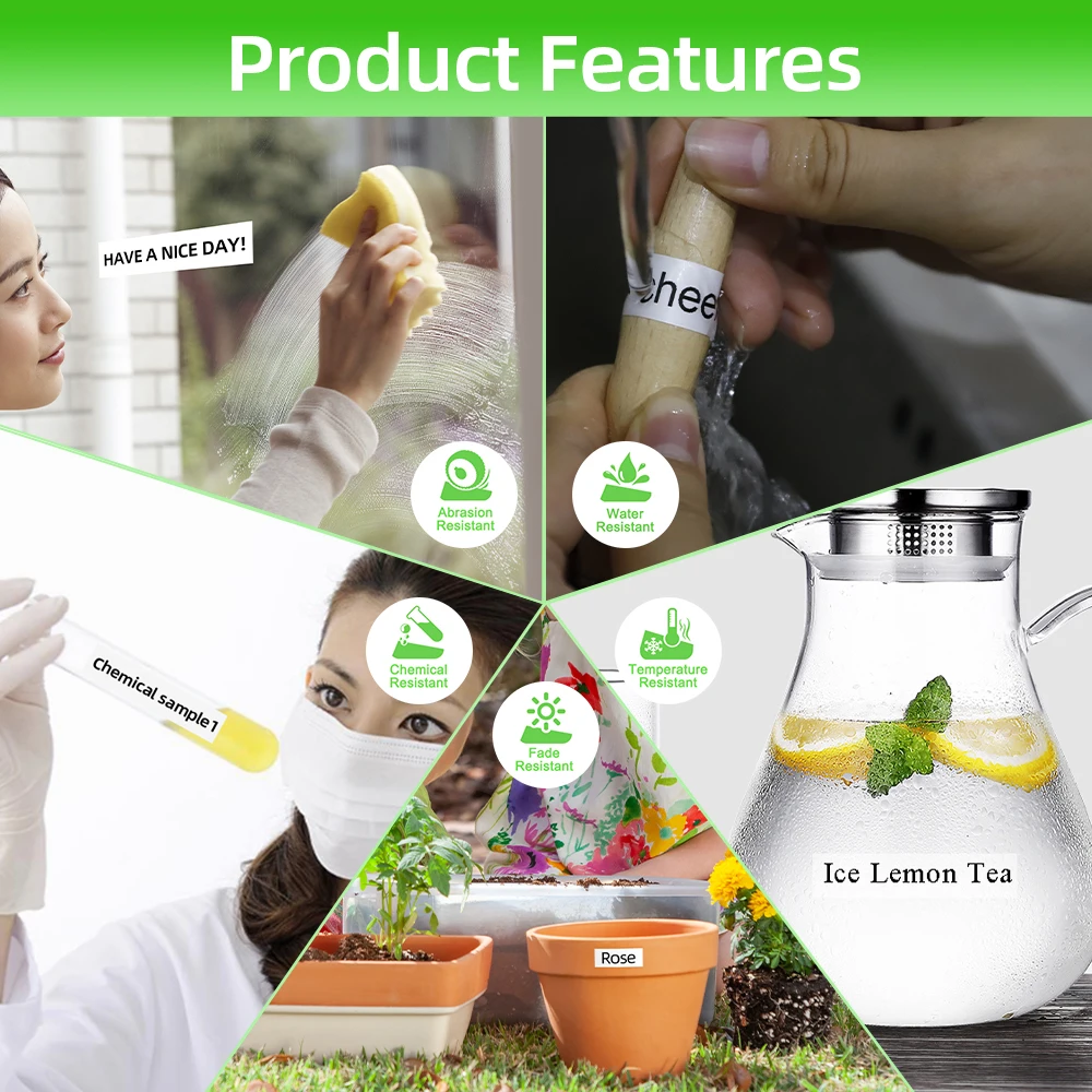 •Сильная адгезия, устойчивость к воде, солнечному свету, химическим веществам, температурам• Разделенная подложка позволяет легко очищать и применять• При удалении этикеток не остается липкого остатка• Использование технологии термопечати без чернил или тонера• Быстрая печать, прозрачный и долговечный эффект, удобный для нашей работы и жизни
