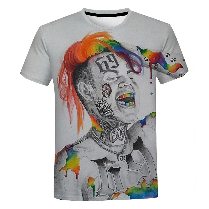 2021 6ix9ine футболка с 3D принтом гооба футболка американский рэпер 6ix 9ine с коротким рукавом унисекс Повседневная Уличная одежда хип-хоп Футболка