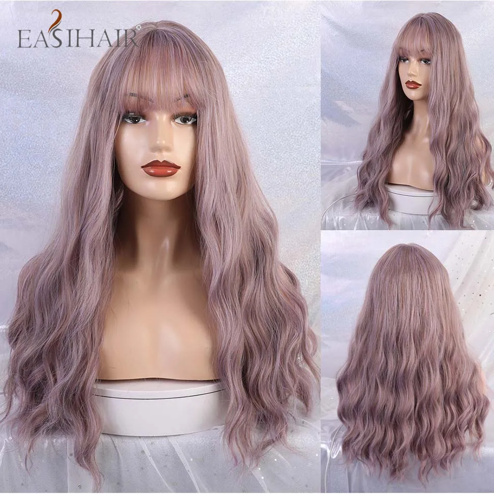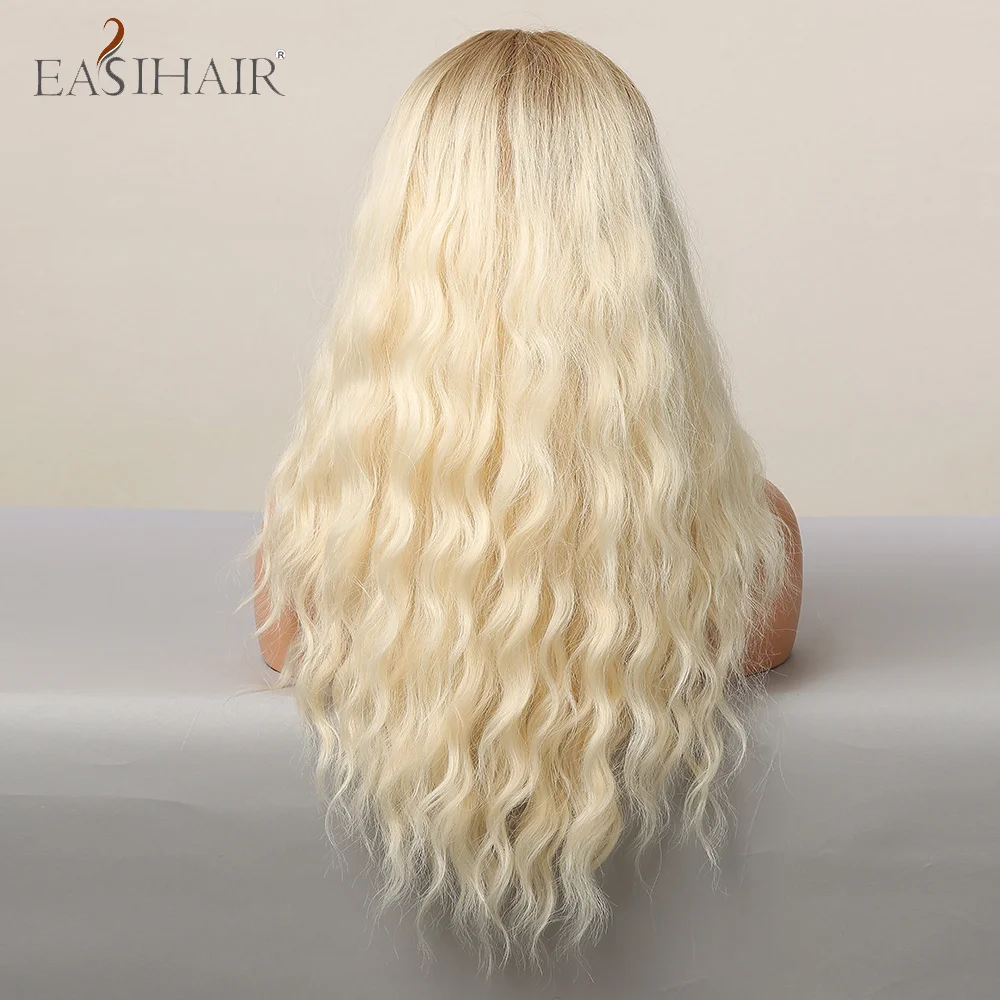 Длинные светлые Платиновые светлые парики с челкой, синтетические волнистые парики с коричневыми корнями для женщин, термостойкие натуральные волнистые волосы