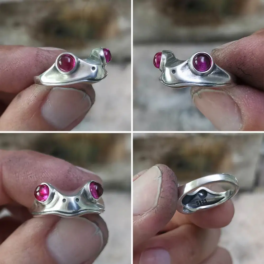LINSION CZ глаза 925 пробы Подвески в виде лягушки кольцо прекрасный детали кольцо в форме жабы TA266 нам Размеры 5 10