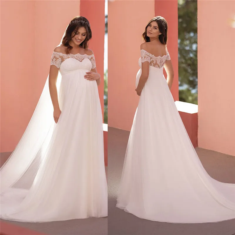 Свадебное платье для беременных, шифоновое кружевное элегантное пла...