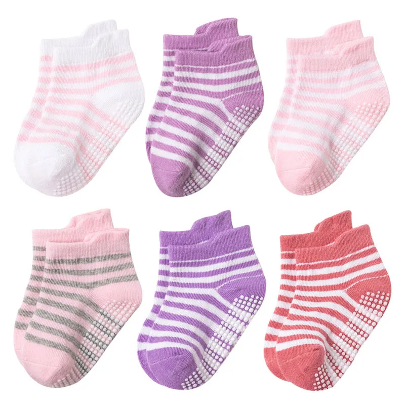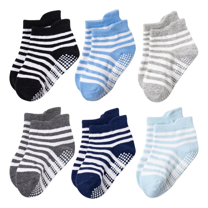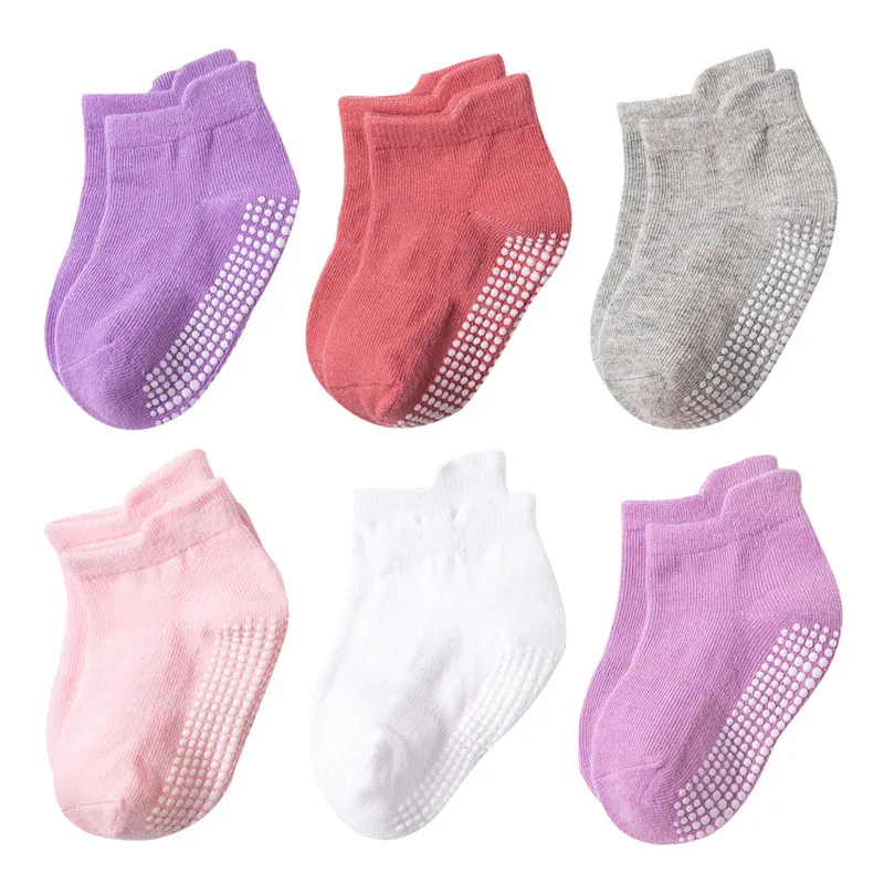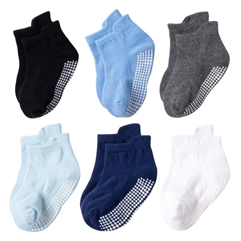 Детские хлопковые носки, 6 парыЛот Детские носки нескользящие носки-башмачки для мальчиков и девочек с резиновыми вставками