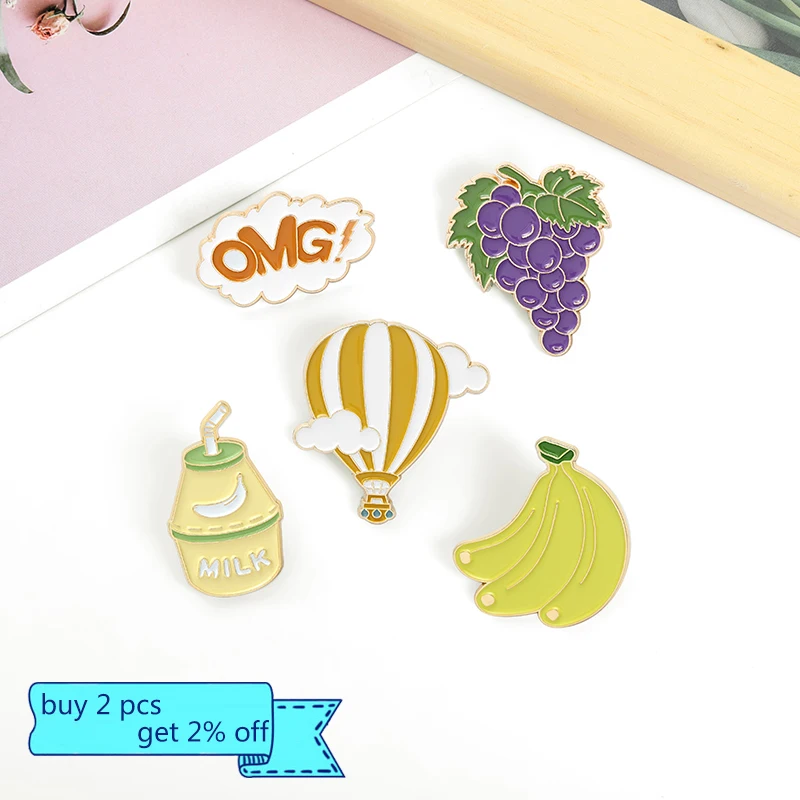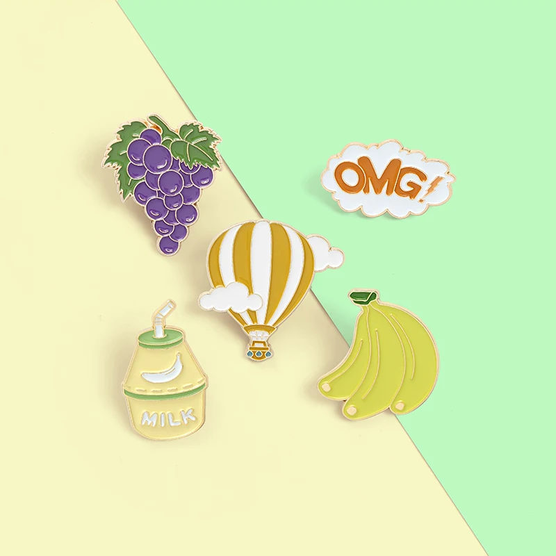 Эмалированная брошь в виде винограда, банана, молочного коктейля, воздушного шара