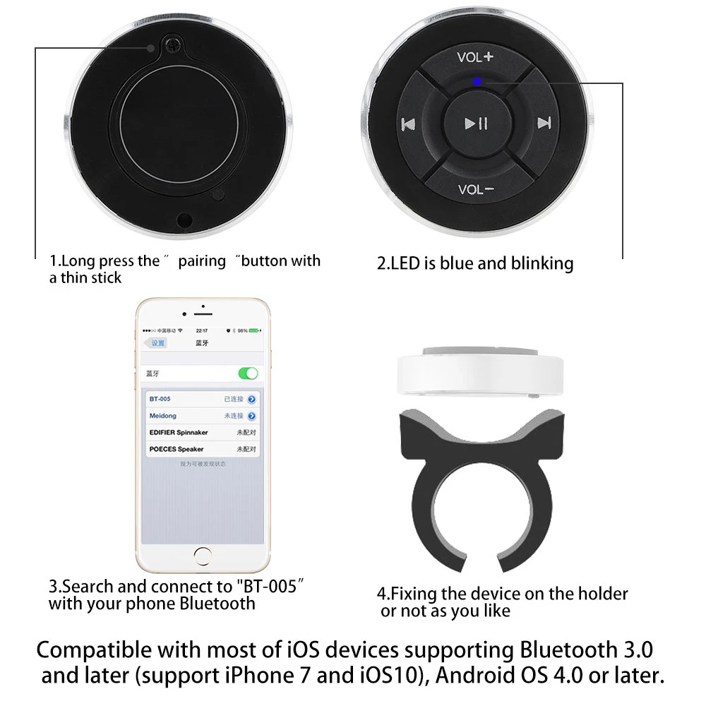 Мотоцикл Велосипед Bluetooth медиа Кнопки громкости для IOS Android телефон планшет автомобильный руль Беспроводной пульты дистанционного управления