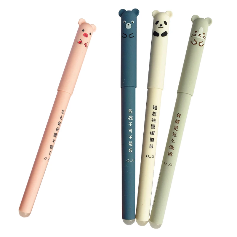 4 шт./компл. Kawaii Свинья с рисунком кошки медведя Мышь со стирающимися чернилами гелевая ручка школьные канцелярские принадлежности подарок 0,5 мм синие Черные чернилаВысокое качество чернил для отличного опыта письма