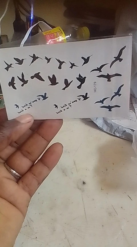 ОписаниеРазмеры: 10,5*6,0 см (4,13 * 2.36in)Посылка включает в себя1 лист (рисунок птицы)Руководство пользователя:1. Вырежьте татуировку на выбор и удалите прозрачный лист.2. Нанесите татуировку на кожу.3. Намочите татуировку губкой.4. Через 20-30 секунд Аккуратно удалите подложку.5. Позвольте татуировке высохнуть.Как удалить:1. Татуировка мазком с натиранием алкоголя или детского масла.2. Подождите 10 секунд, затем аккуратно и повторно протрите, пока не удалите.