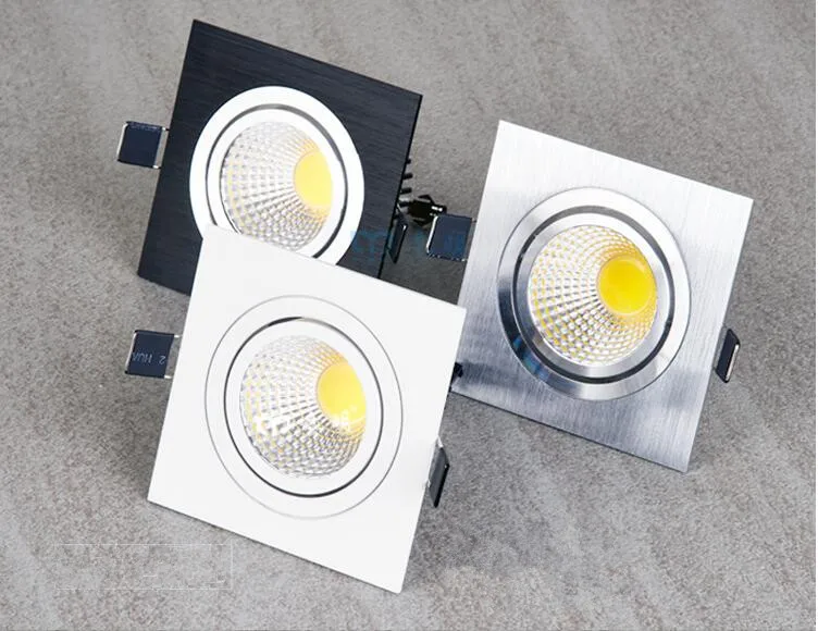 Бесплатная доставка светодиодный квадратный COB даунлайт с регулируемой яркостью ac80-240V 7 ваттов 9 ваттов 12 ваттов Встраиваемый светодиодный точечный потолочный светильник лампочки Освещение в помещении