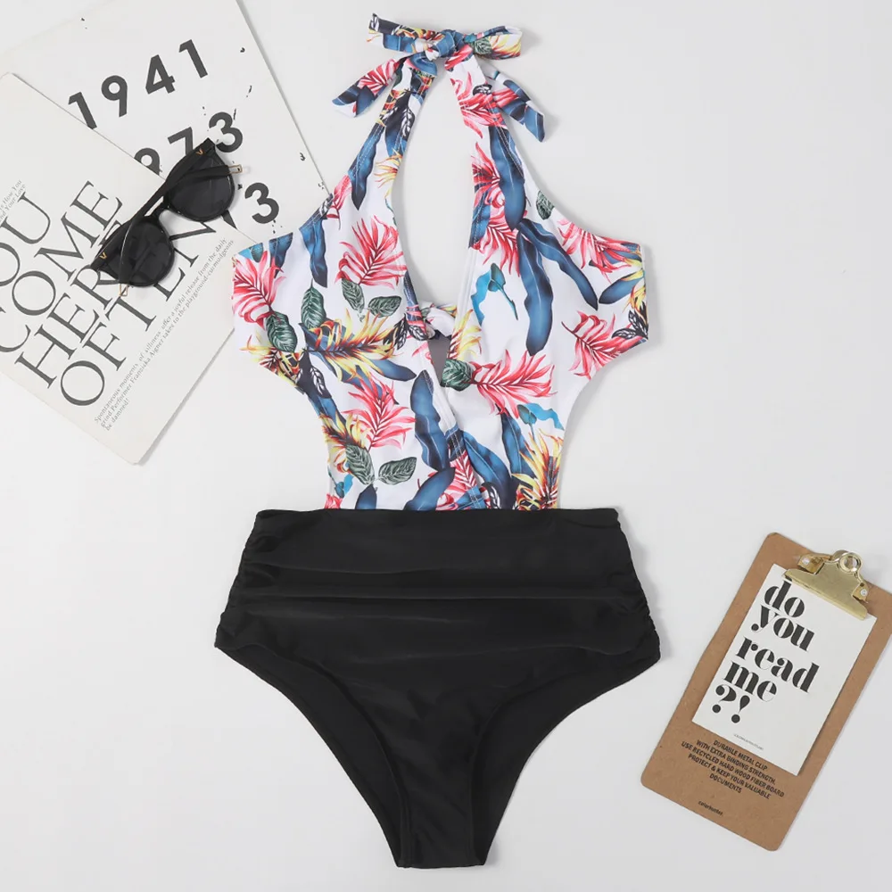 Зеленый слитный купальник с V-образным вырезом, сексуальный женский монокини с лямкой на шее и открытой спиной, новинка 2021, пляжные купальные костюмы с вырезом на талии для девушек, купальник
