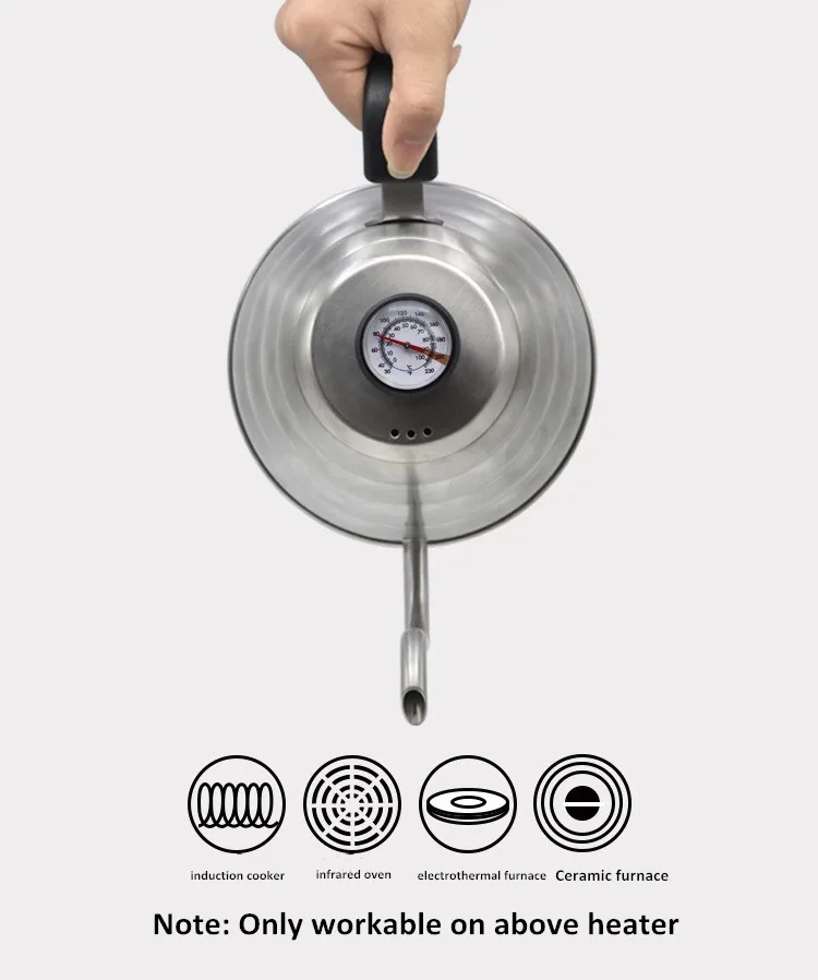 304 нержавеющая сталь кофе капельная гусиная шея чайник бутылка с термометром кухонный аксессуар 1/1.2L1. Большая емкость и долговечность2. Дизайн в форме облака делает его более модным3. Ручка линии сборки позволяет вам чувствовать себя комфортно4. Корпус чайника украшен бальзамом, легко чистится и прочнее.5. Чайник с ситечком делает чай вместе, удобнее пить6. С термометром, чтобы увидеть температуру. Спецификация:Состояние на 100% абсолютно новыйЦвет: серебристыйМатериал: нержавеющая сталь 304Емкость: 1000/1200 мл Посылка включает в себя:1 х кофейникПримечание:1. Из-за различных настроек монитора и светильник эффект, фактический цвет элемента может иметь s светильник ly отличается от цвета, представленного на снимках.2. Возможны отклонения в 1-3 см вследствие измерений вручную.