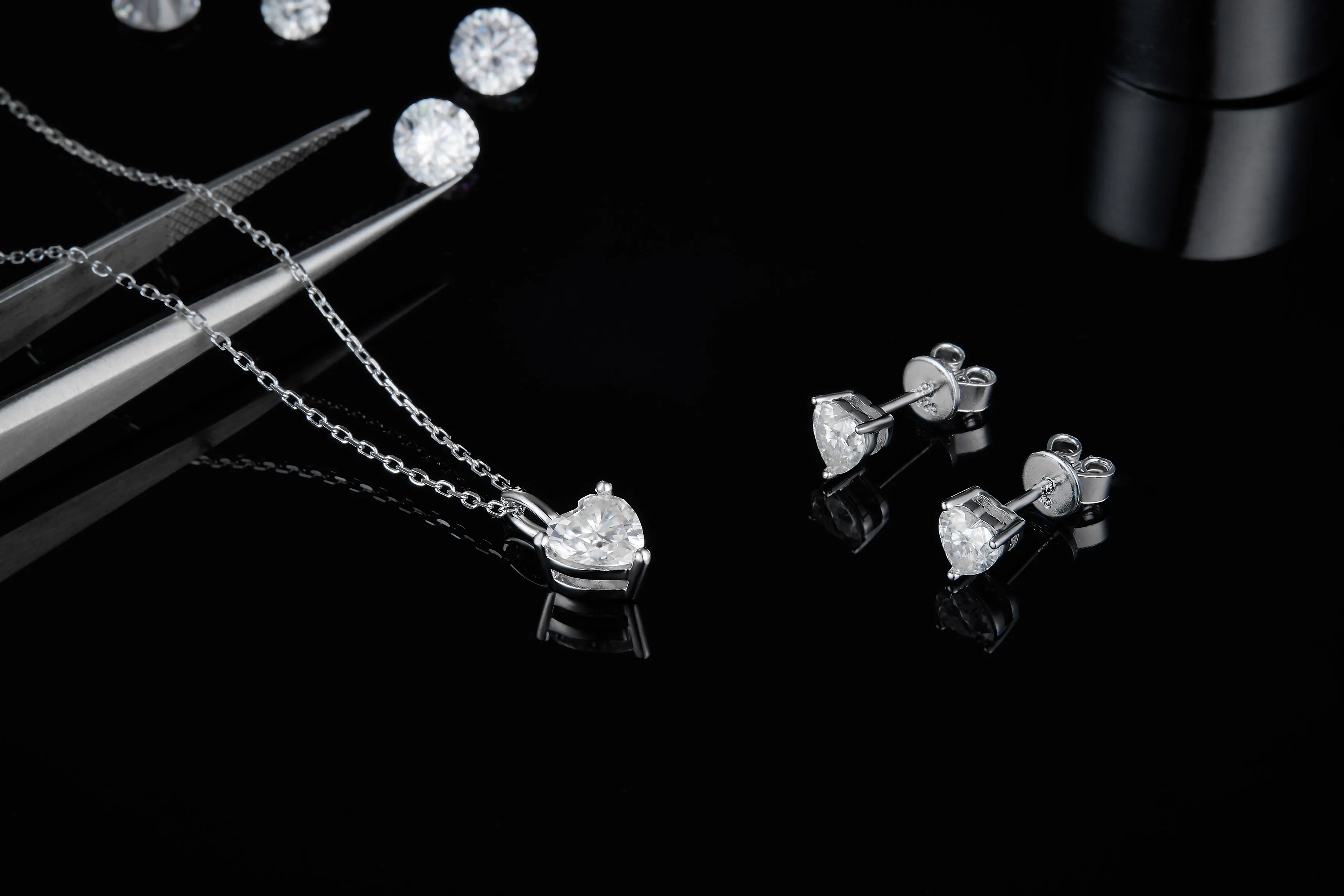 Комплект ювелирных изделий из серебра 925 пробы, с муассанитом