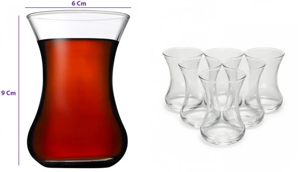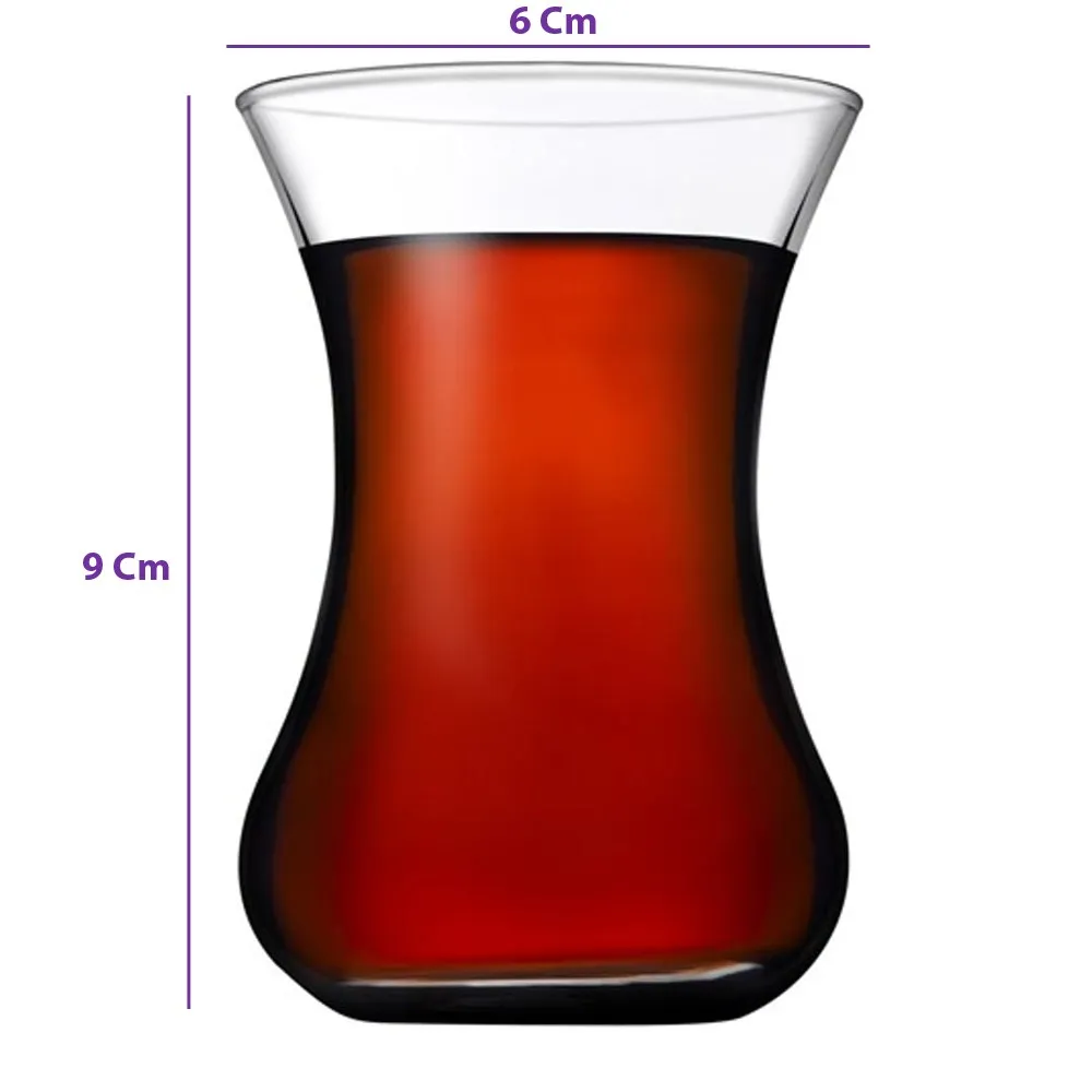 Турецкий стеклянный чайный набор из 6 предметов с тонкой талией, высококачественные стеклянные подставки, каждый 135 куб. См, Сделано в Турции