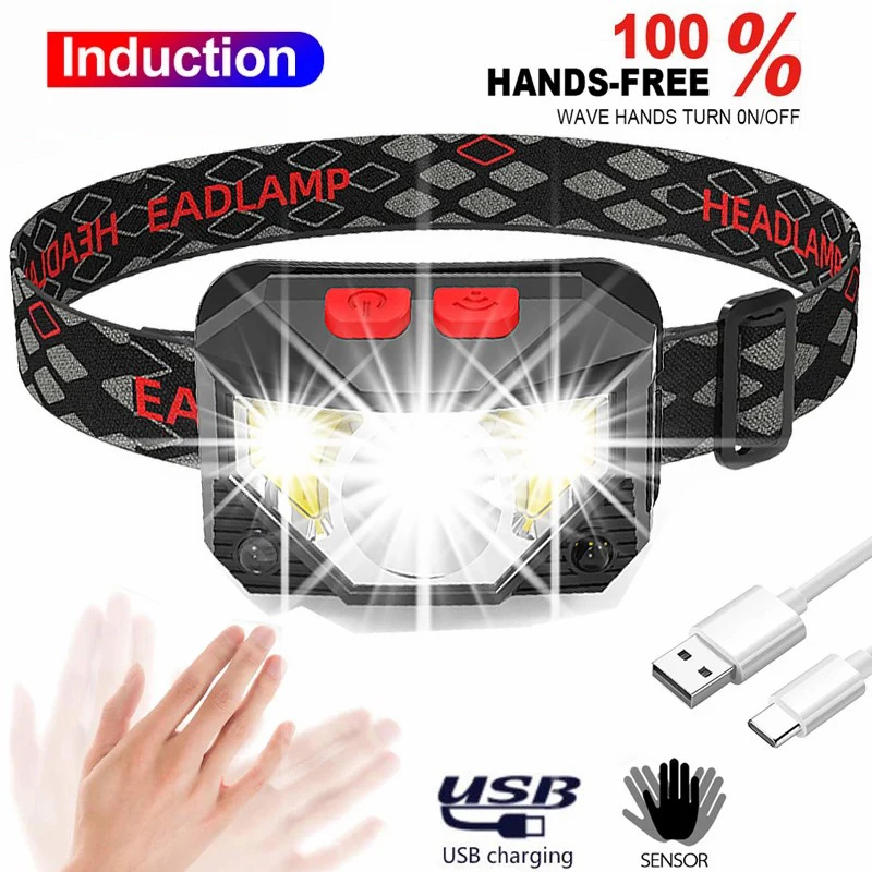 Налобный фонарь, светодиодный со встроенным аккумулятором и датчиком движения