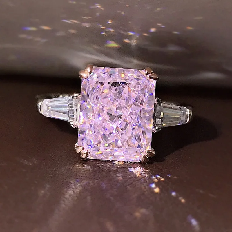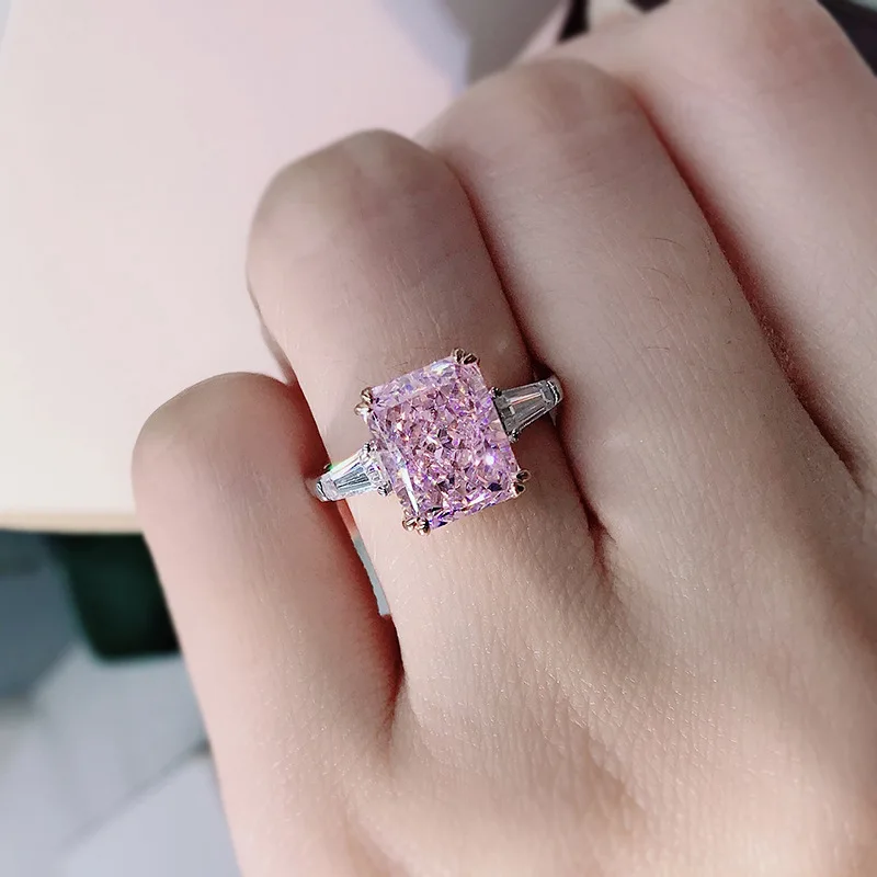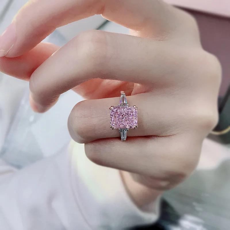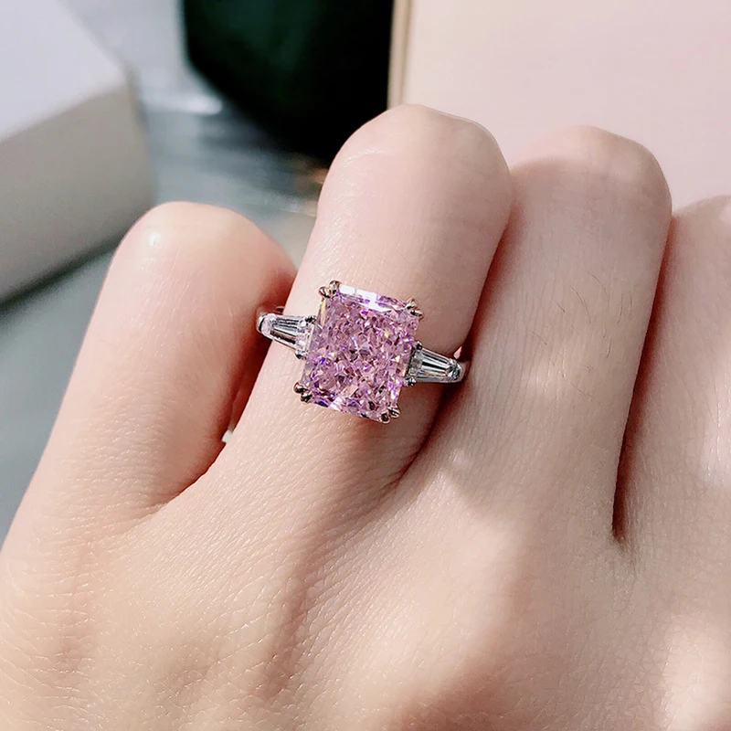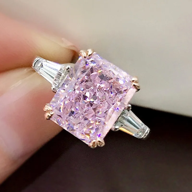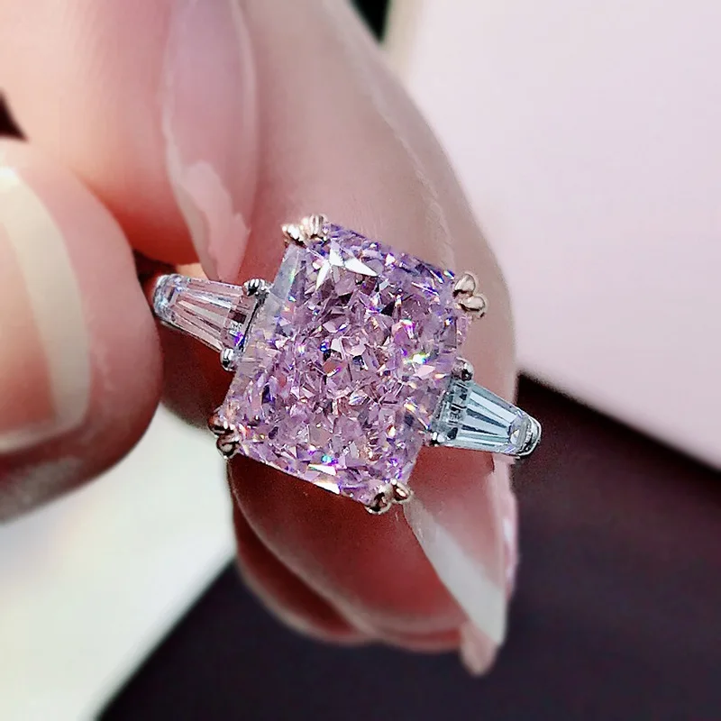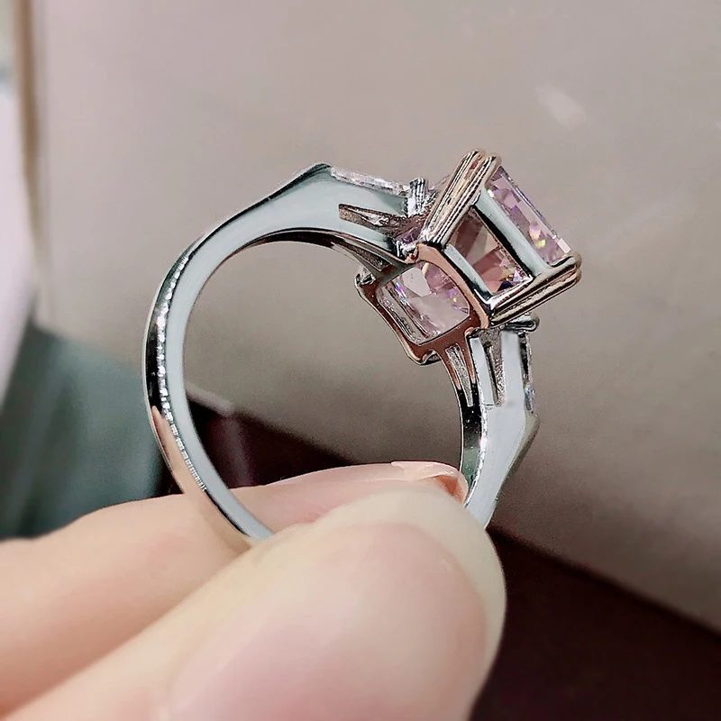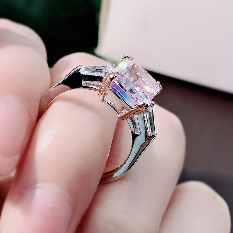Кольцо женское из серебра 100% пробы с квадратным розовым высокоуглеродистым бриллиантом