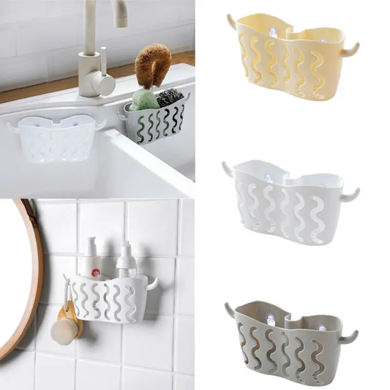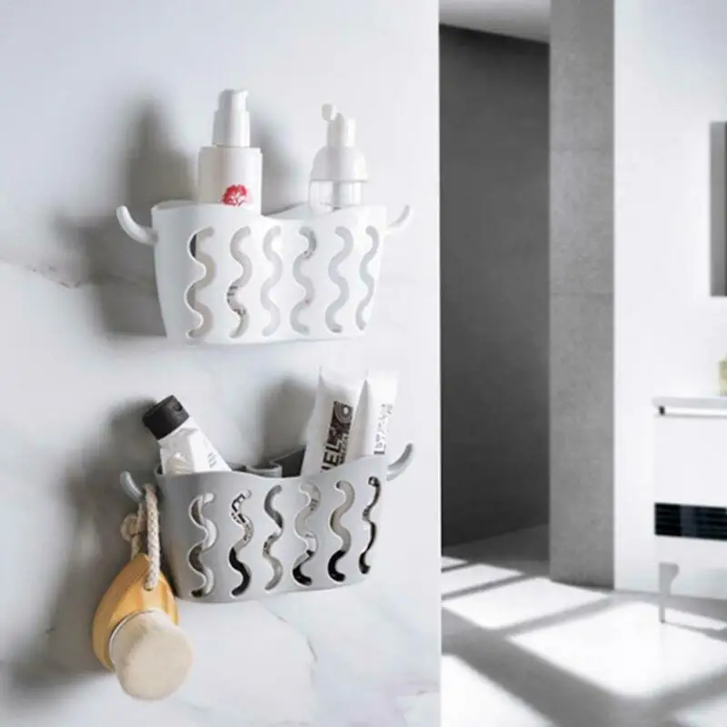 Домашнее настенное крепление для хранения корзины для ванны органайзер для кухни и ванной Прочная полка для вещей с двумя небольшими крючками стеллаж для хранения