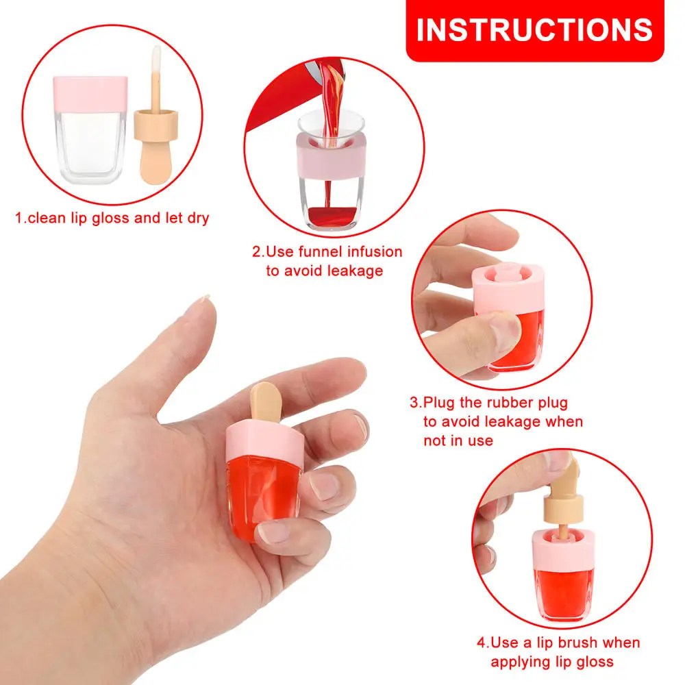 10pcs 8ml Lip Gloss Bottles Lip Glaze Tube Empty Pink Ice Cream Lip...