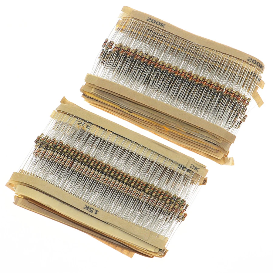 1500 шт./лот набор углеродных пленочных резисторов 75 значений * 20 шт. 5% 1/4 Вт набор резисторов для самостоятельного использования с цветным кольцевым сопротивлением (1ohm-10Mohm)