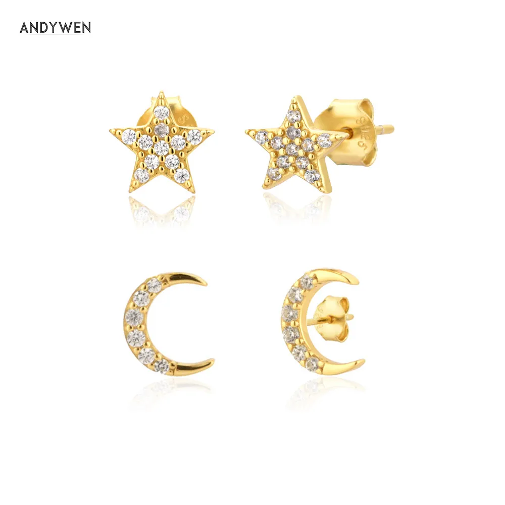 ANDYWEN 925 Стерлинговое Серебро, крошечные циркониевые фианиты, звезда, луна, фотоэлемент, роскошные кристаллы, Изящные Ювелирные изделия, свадебные аксессуары