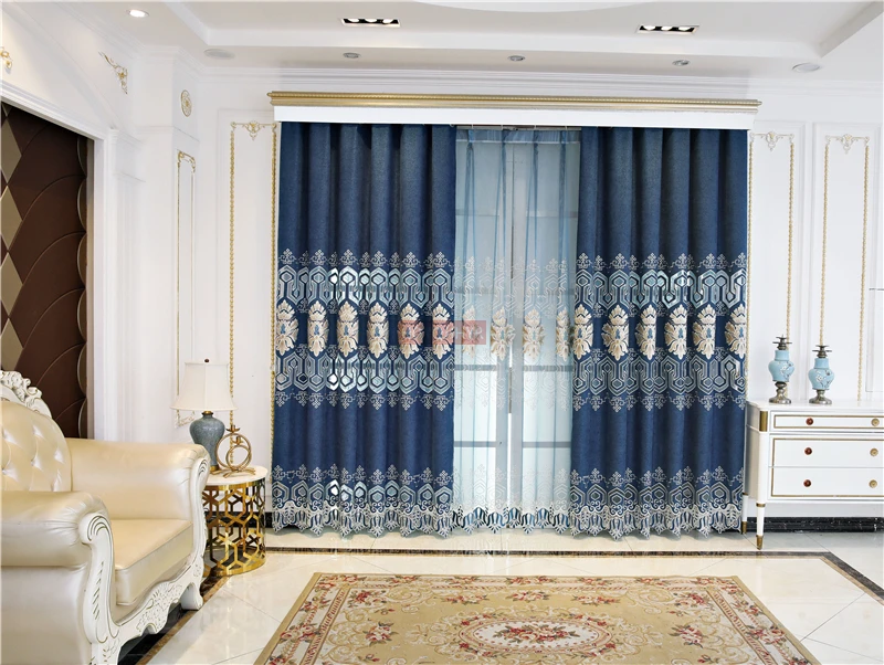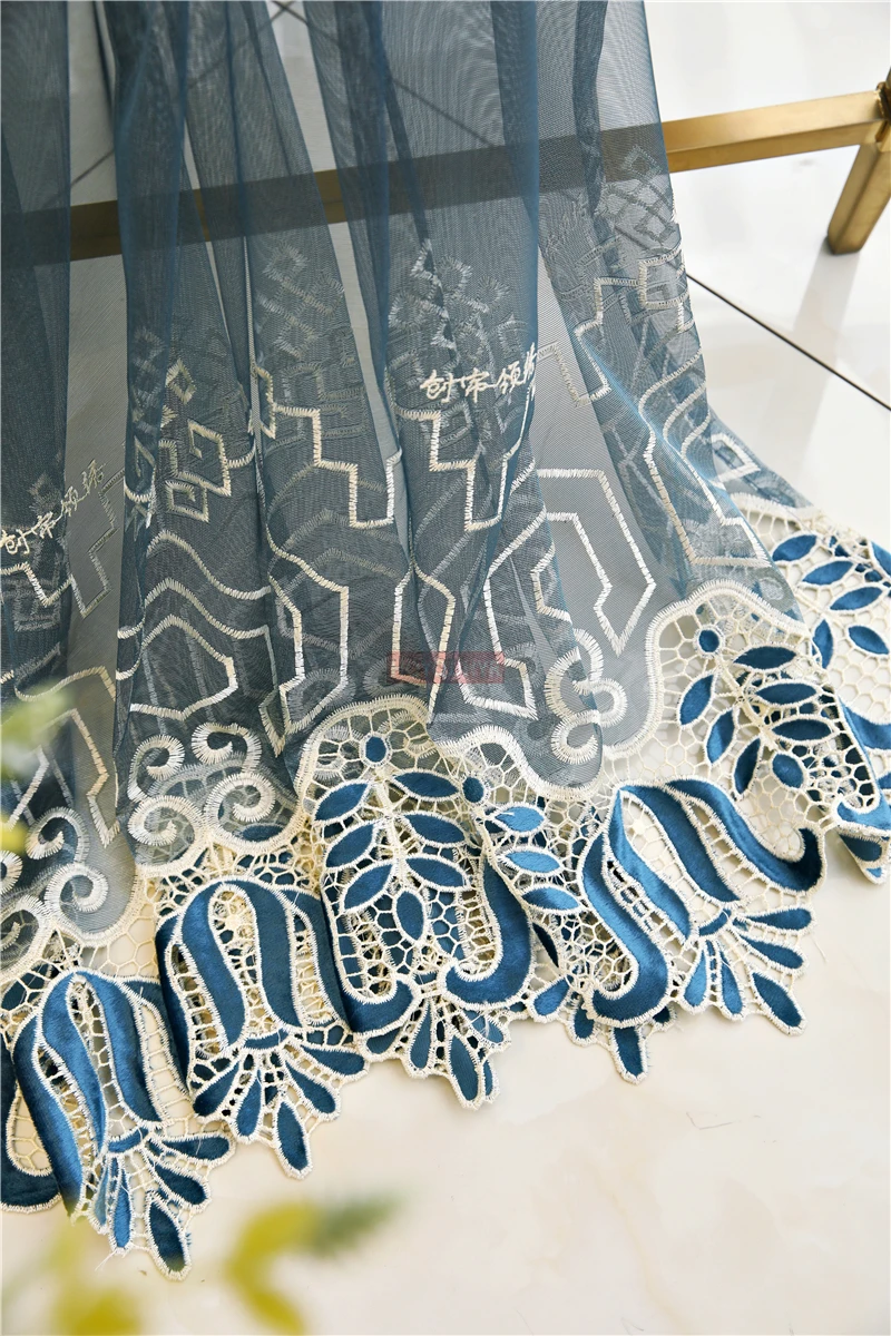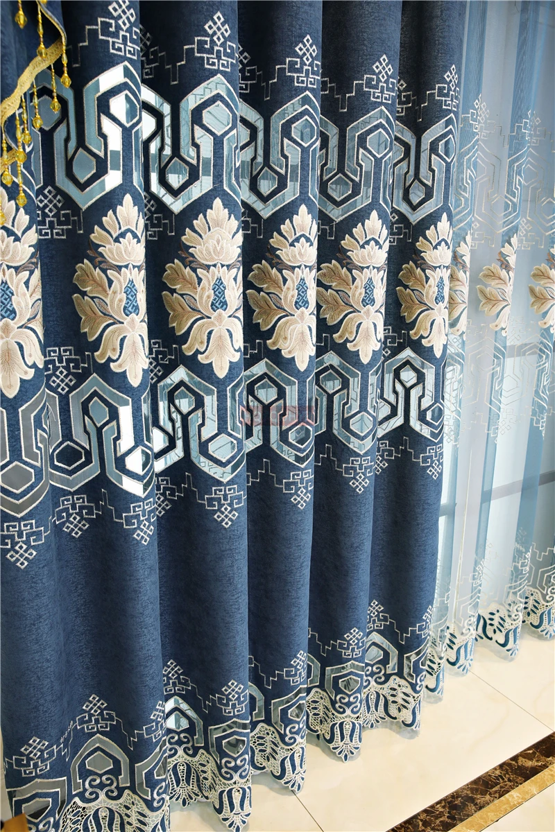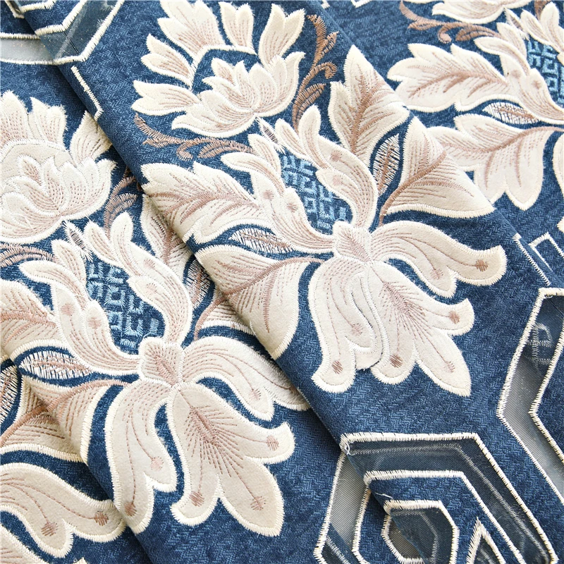 Темно-синие европейские и американские украшения с вышивкой, элегантные шторы для виллы, гостиной, высококачественные шторы для спальни, гостиницы