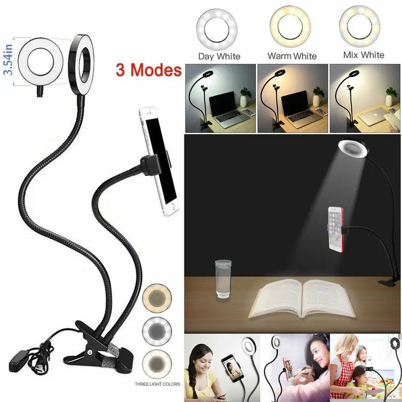 Держатель для мобильного телефона с кольцом для селфи для прямого эфира, Гибкий Мобильный телефон с зажимом держатель ленивый кронштейн настольная лампа Светодиодная лампа для мобильного iphone 7,6/plus, для Samsung,HTC,HUAWEI at