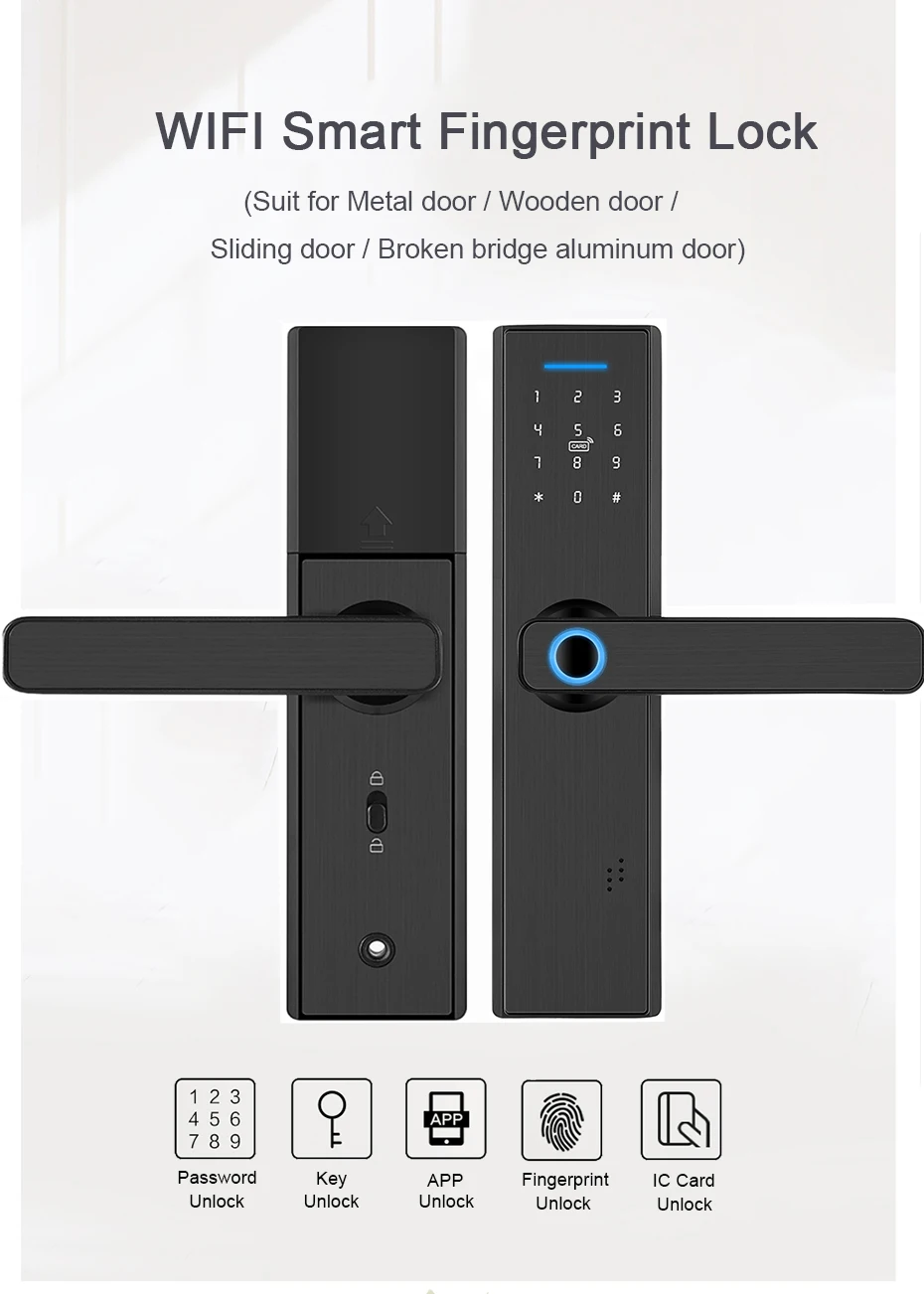 Умный дверной замок Tuya, электронный замок с биометрической разблокировкой по отпечатку пальца, Wi-Fi, паролем через приложение и RFID для дома