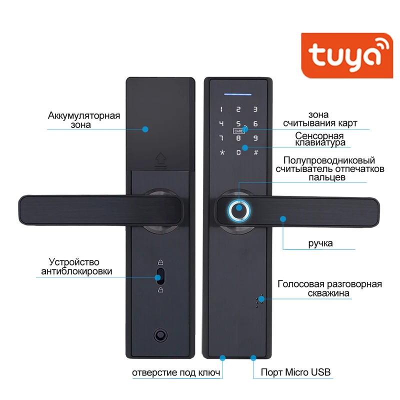 Передняя панель x 1Задняя панель x 1Врезной замок x 1Смарт-карта x 5Механический ключ x 2Комплект винтов x 1