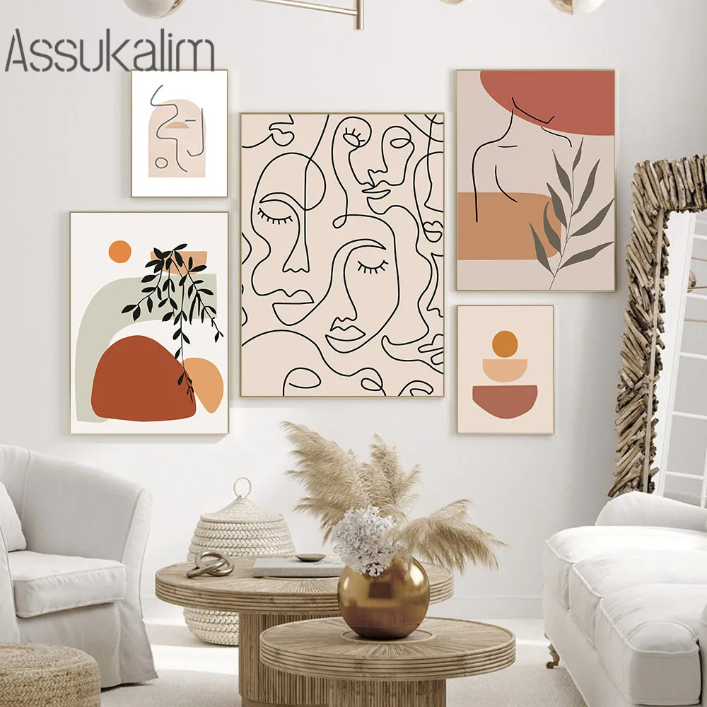 Настенная картина в стиле бохо, холст для рисования линий, абстрактный постер для женщин, печать обнаженных растений, листья, украшение для гостиной