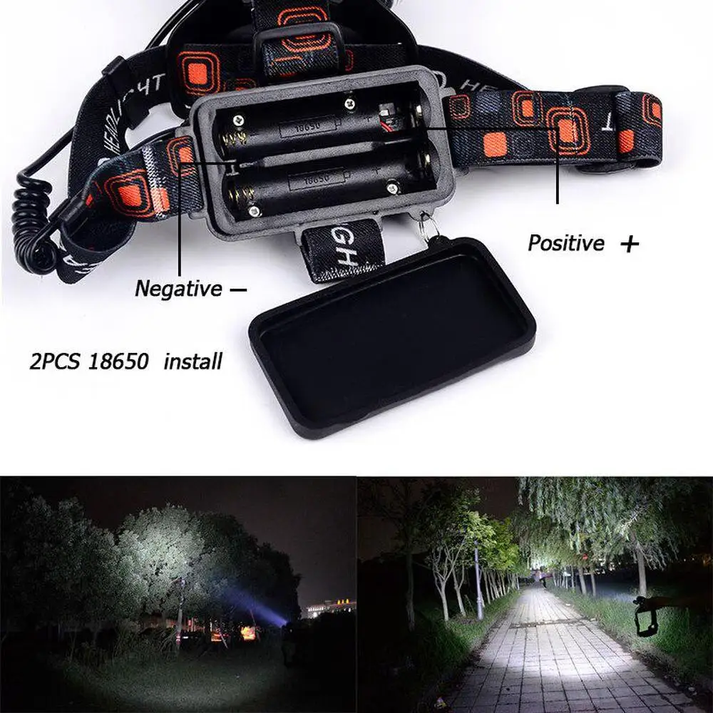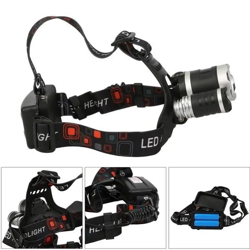 Налобный фонарь с регулируемым фокусом, 18650 лм, 1 * T6 и 2 * Q5