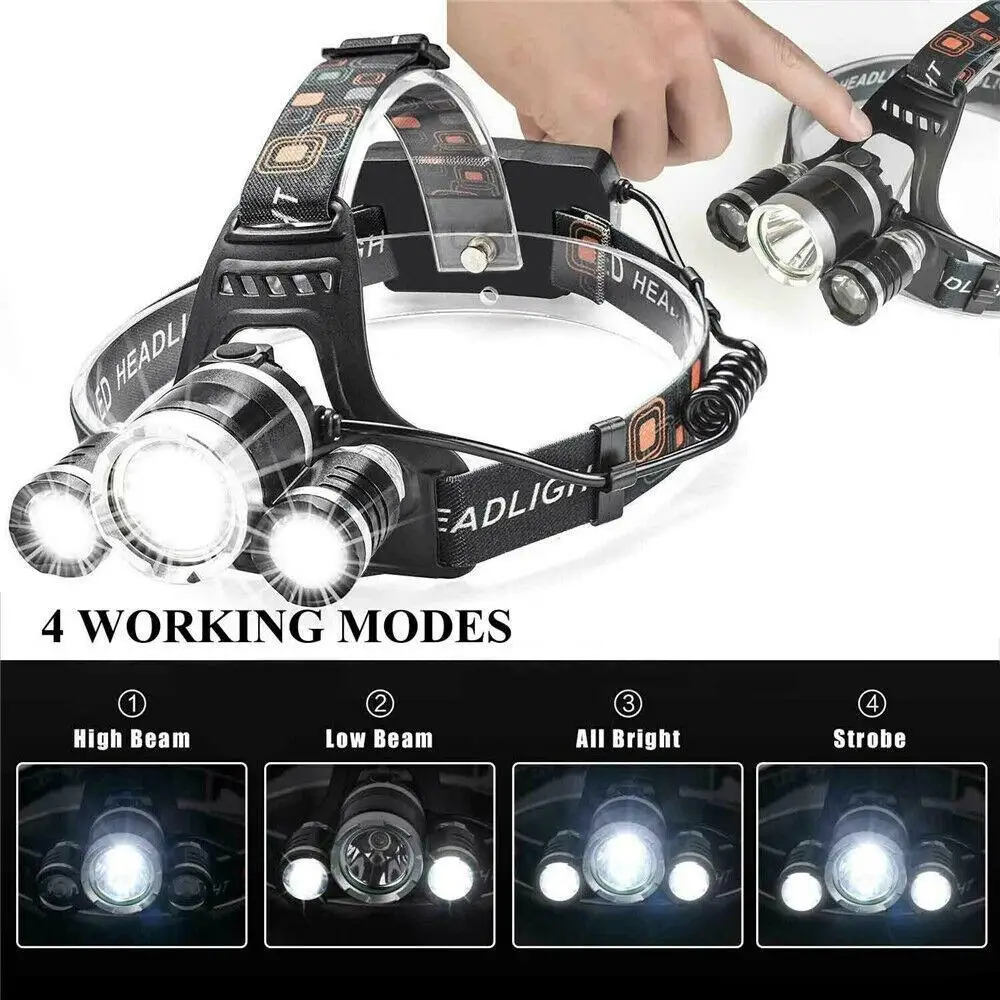 Светодиодный налобный фонарь, налобный фонарь, фонарик, фонарик 3x ...