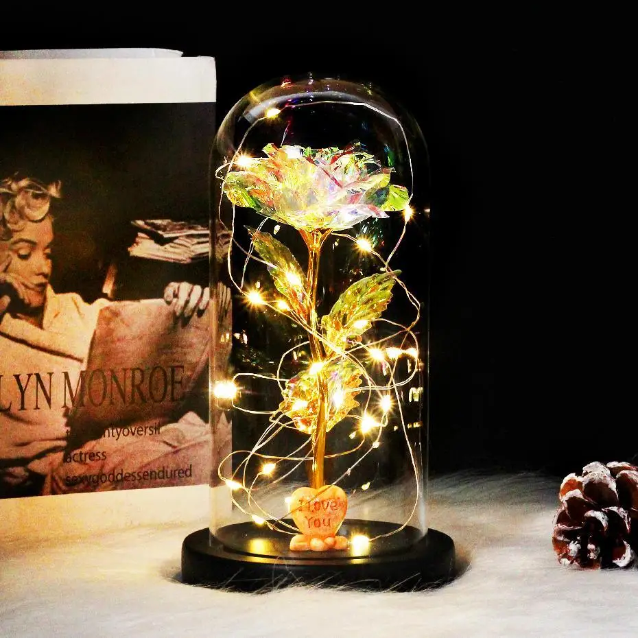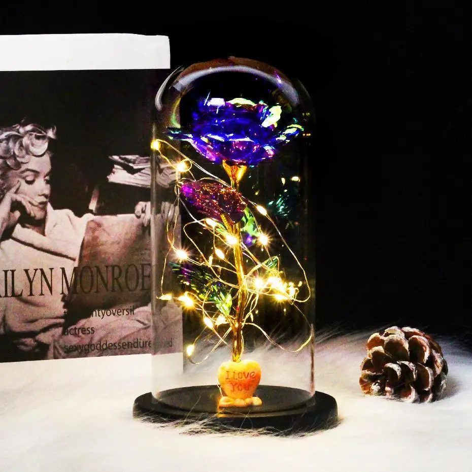 Красивая вечная роза, светодиодная подсветка, Красавица и чудовище, Роза в хрустальном куполе на день рождения матери, подарок для