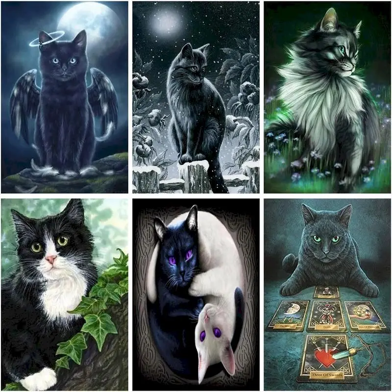 Алмазная 5D Вышивка коты SDOYUNO, полноразмерная картина с квадратными стразами, ручная работа, хобби, бусины стразы, искусство, вышивка крестиком, подарок