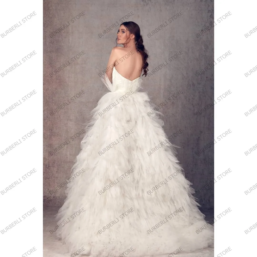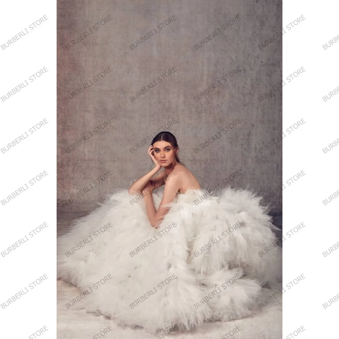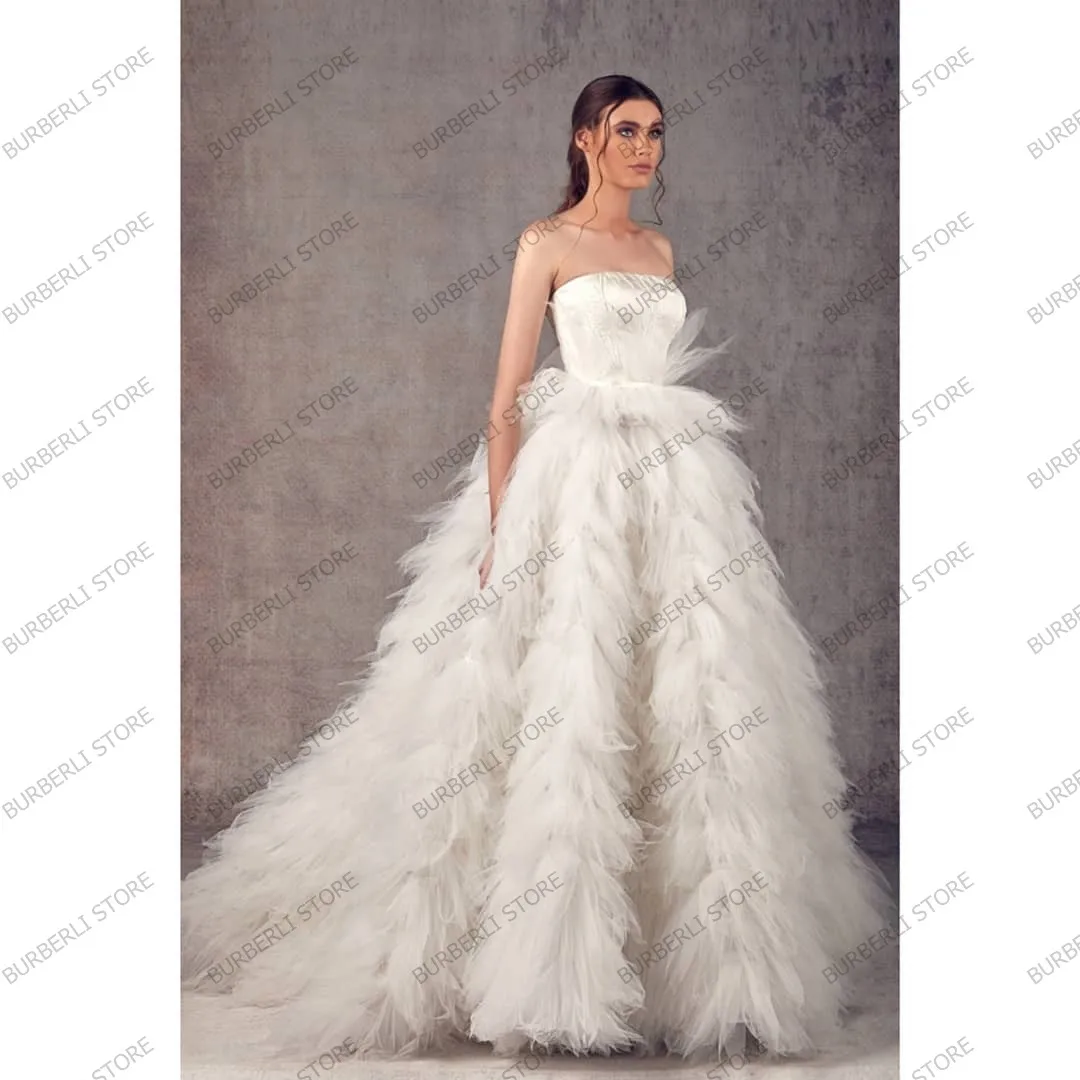 Очаровательные бальные платья цвета слоновой кости из пышной тюлевой ткани для невесты красивое платье без бретелек с пышными оборками в несколько рядов для свадебной вечеринки