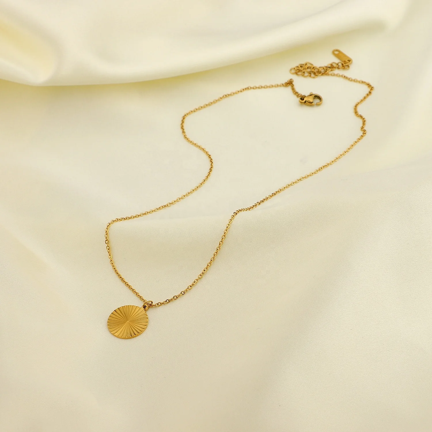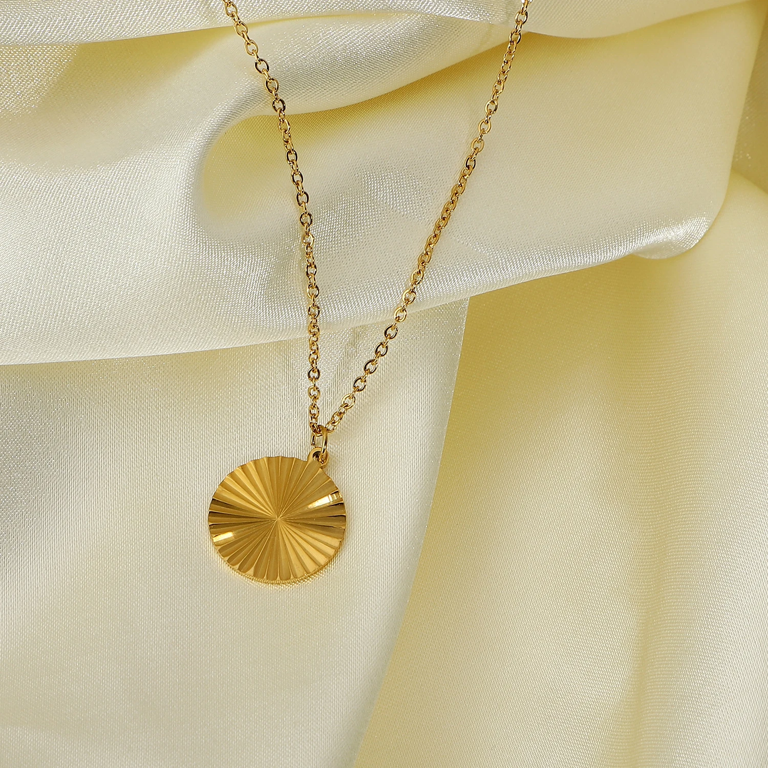 18K золотое покрытие монета ожерелье для мужчин и женщин, модные ювелирные изделия 316L нержавеющая сталь Sunray круглый диск Кулон ожерелье вечерние подарки