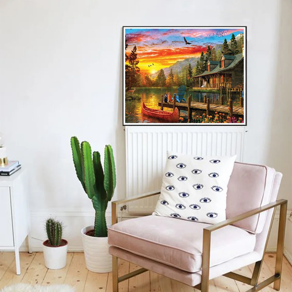 EverShine DIY алмазная живопись закат полный квадрат 5D алмазная вышивка пейзаж мозаика дом Стразы хобби ручной работы