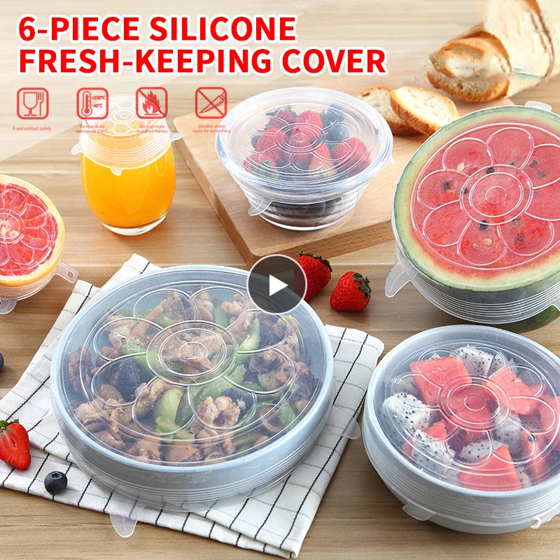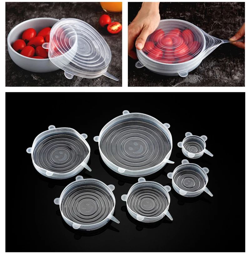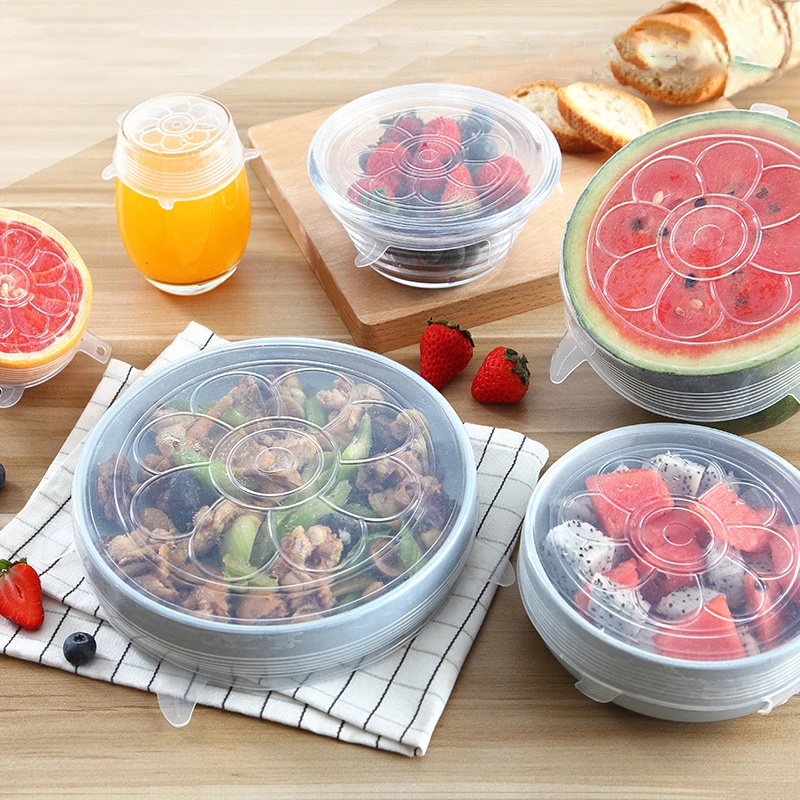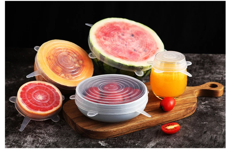 6 шт.компл. силиконовый чехол стрейч многоразовые крышки герметичны...