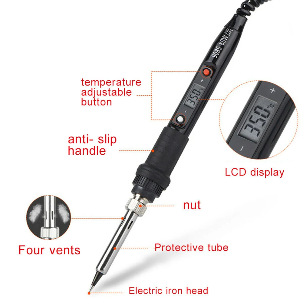 Термостатический Электрический мини-паяльник, 80 Вт, 110 В220 В, цифровой ЖК Электрический паяльник, ручной припой, провод, пинцеты, инструменты