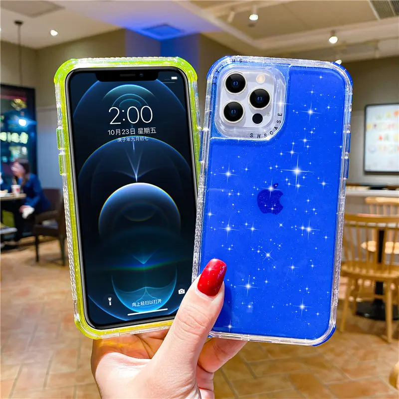 Чехол-бампер для iPhone 12 11 13 Pro Max XR X XS Max 7 8 Plus 12 11 Pro 13, прозрачный, с блестками, жесткая задняя крышка