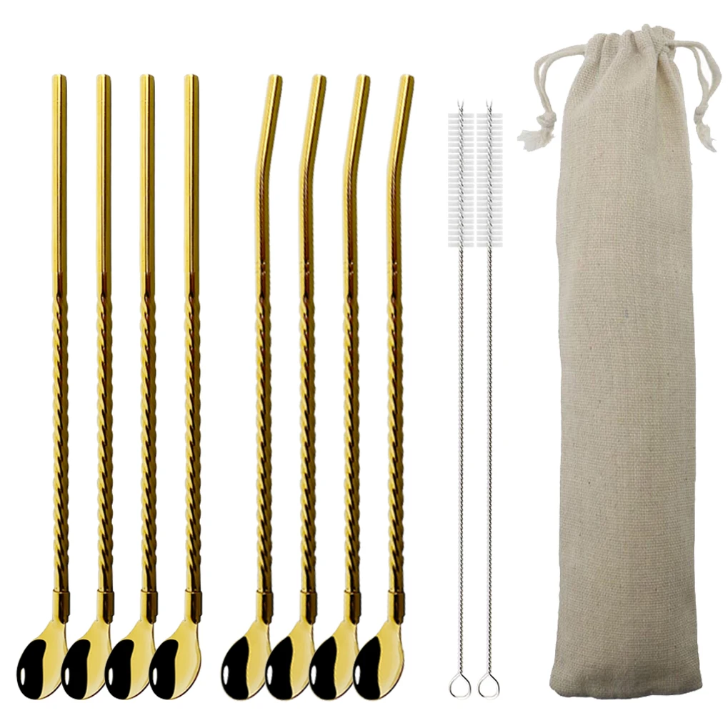 8 шт eco-friendly Нержавеющаясталь круговой Форма Нержавеющаясталь Металл питьевой соломы ложка многоразовые трубочки Коктейльные ложки комплект