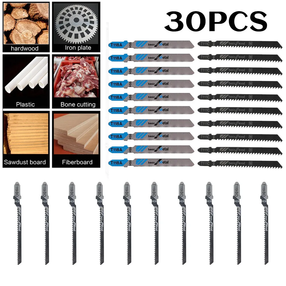 Набор лезвий для ножовочной пилы T119BO T111C T118A, комплект из 30 т-образных лезвий для лобзика, металла, дерева, пластика, в ассортименте Bosch Dewalt