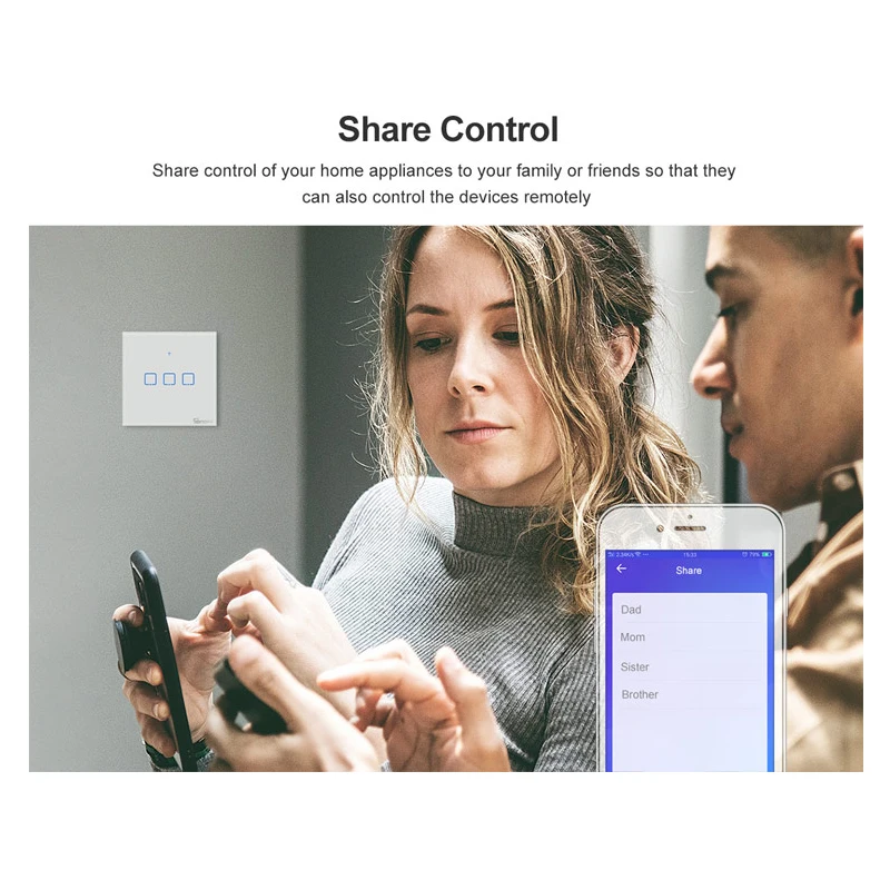 Совместим с функцией IFTTT, переключатели могут взаимодействовать с множеством устройств и услуг, чтобы включить или выключить их. Есть несколько сложных шагов, когда мы начинаем получать доступ к умному дому, для сопряжения, введите учетную запись и пароль, имя и так далее. Управление share обеспечивает быстрый способ, позволяющий вам и вашей семье управлять устройствами вместе. Вы не уверены, выключаете ли нагреватель, когда выходите из дома, Просто вытащите свой телефон и откройте приложение eWeLink, чтобы проверить состояние устройства в режиме реального времени.