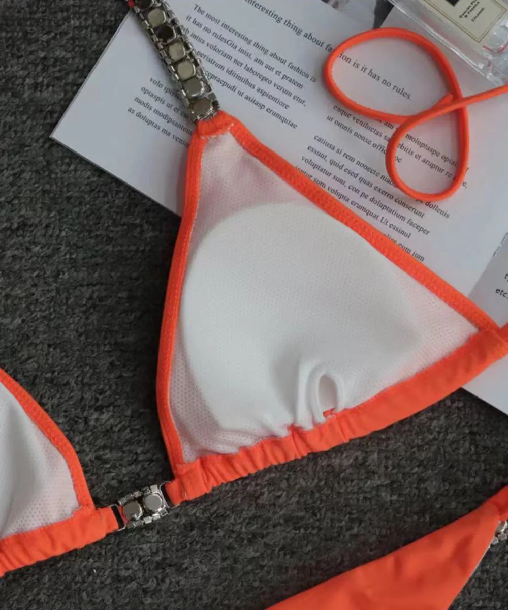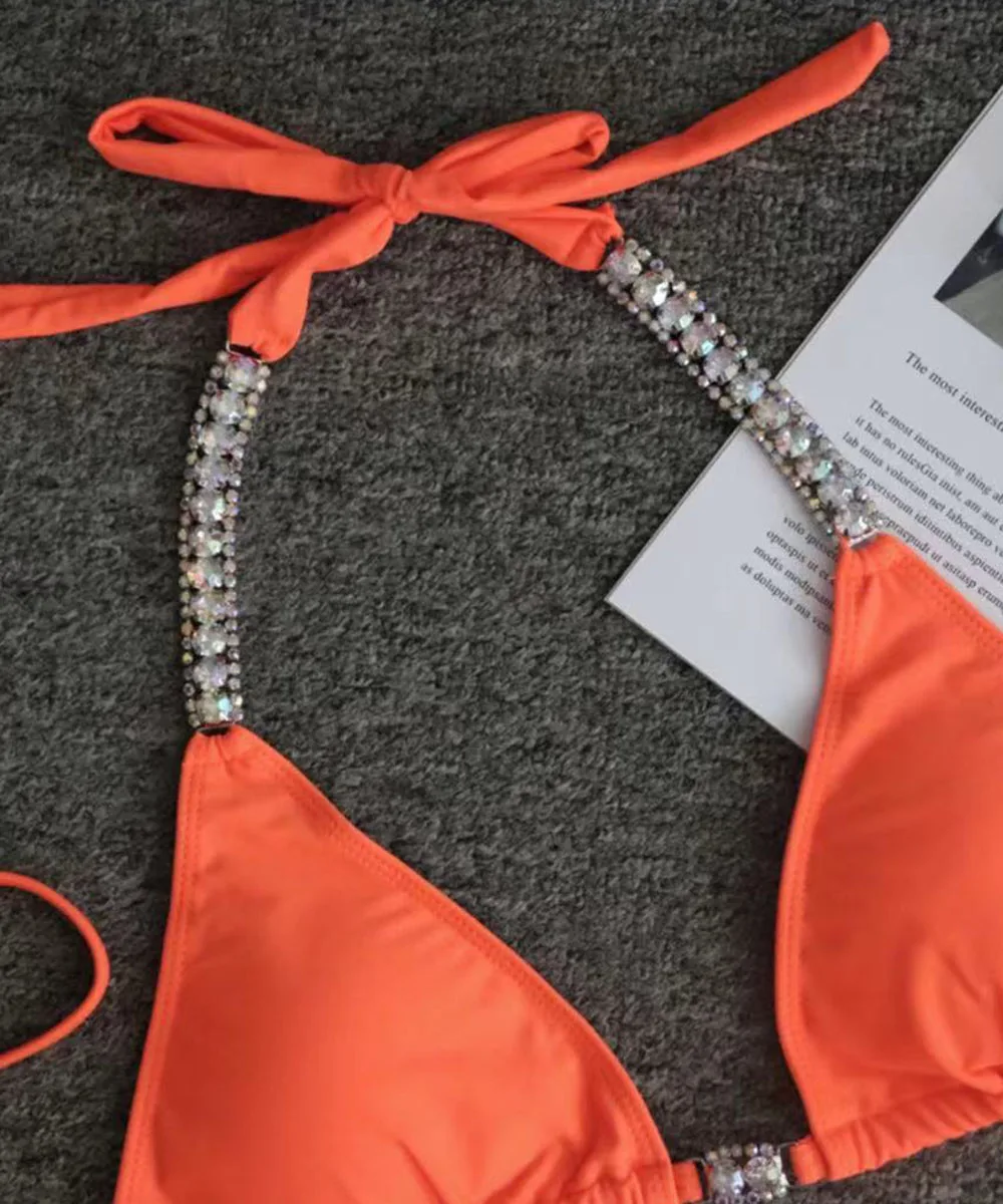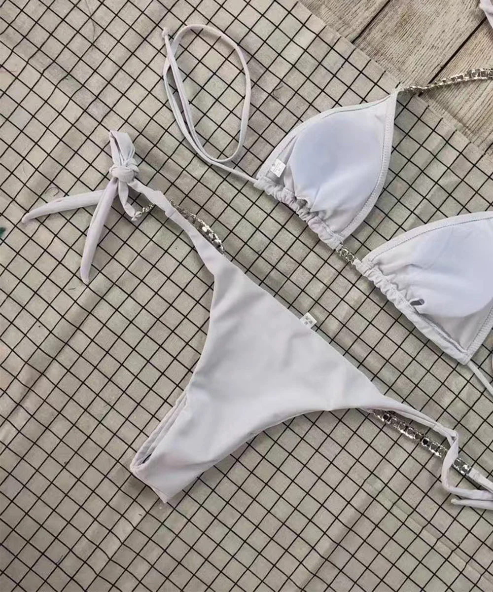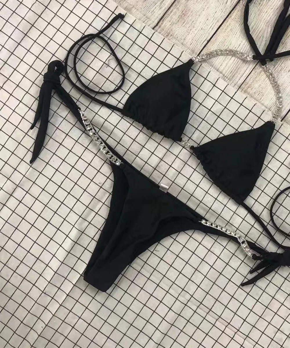Женский купальник бикини с цепочкой, пикантный бандажный комплект бикини с кристаллами и бриллиантами, купальники с эффектом пуш-ап, летняя пляжная одежда, 2021
