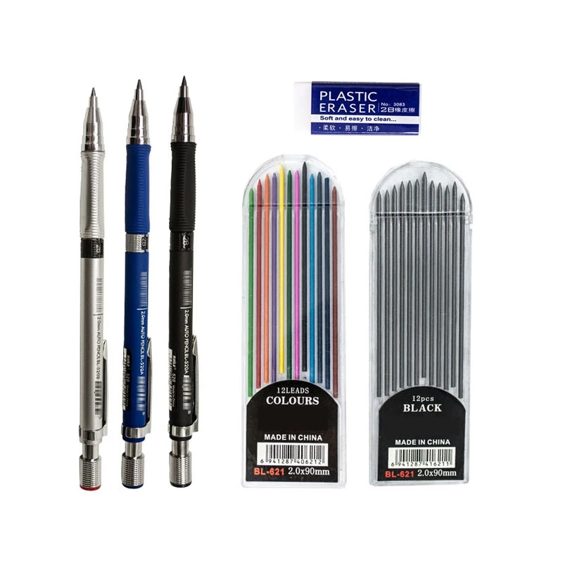 Набор механических карандашей 2,0 мм, кавайные черные автоматические карандаши для рисования, рисования, рисования для письма, подарок для девочек, школьные принадлежности