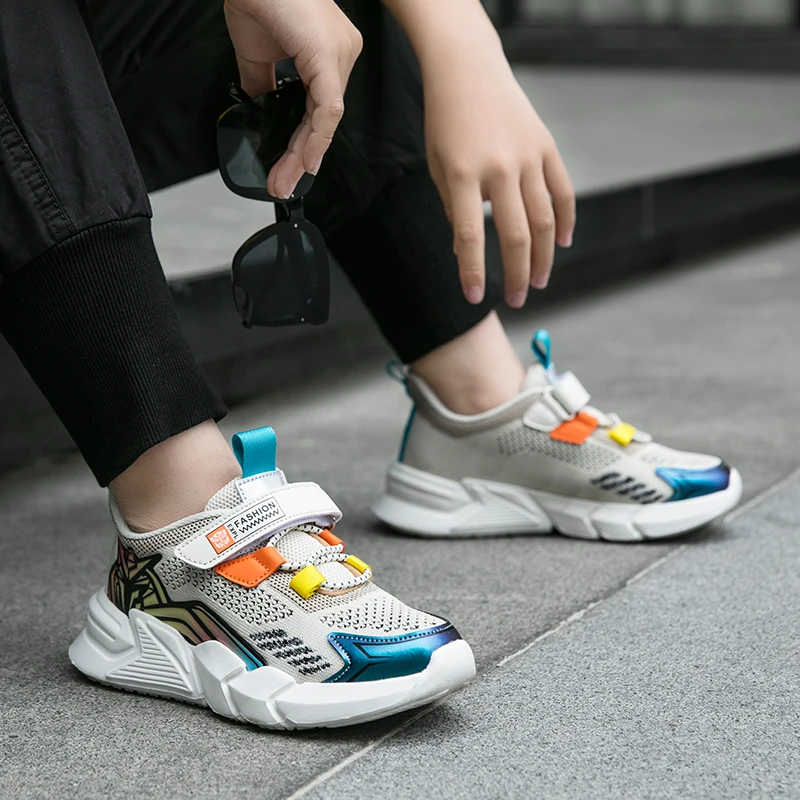 Кроссовки детские летние из сетчатого материала, дышащие, на липучке